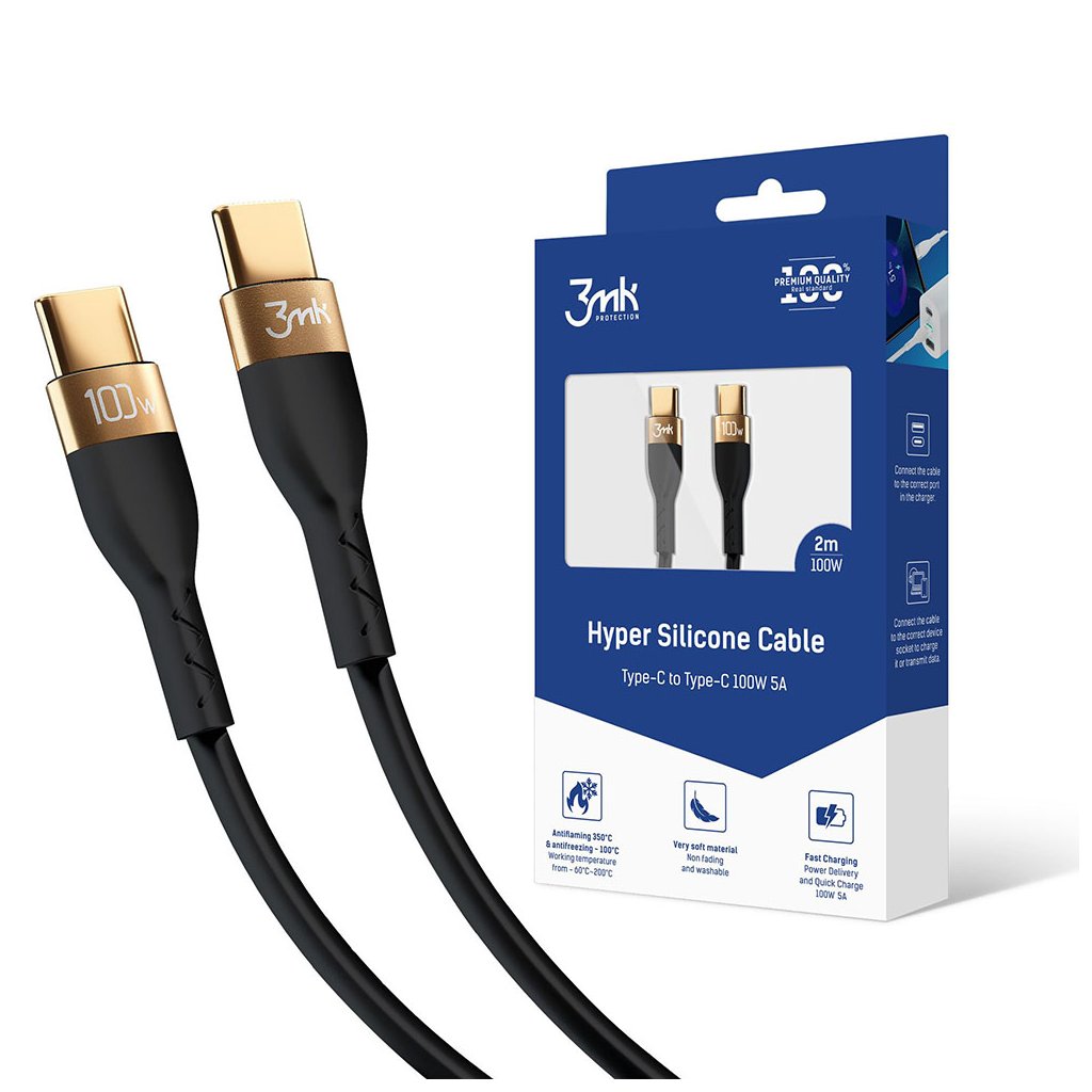 3mk Dátový kábel Hyper Silicone USB C na USB C 100W 5A 2m čierny