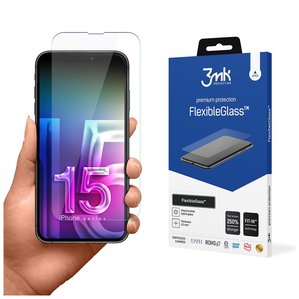 3mk FlexibleGlass iPhone 15 – priehľadné hybridné sklo