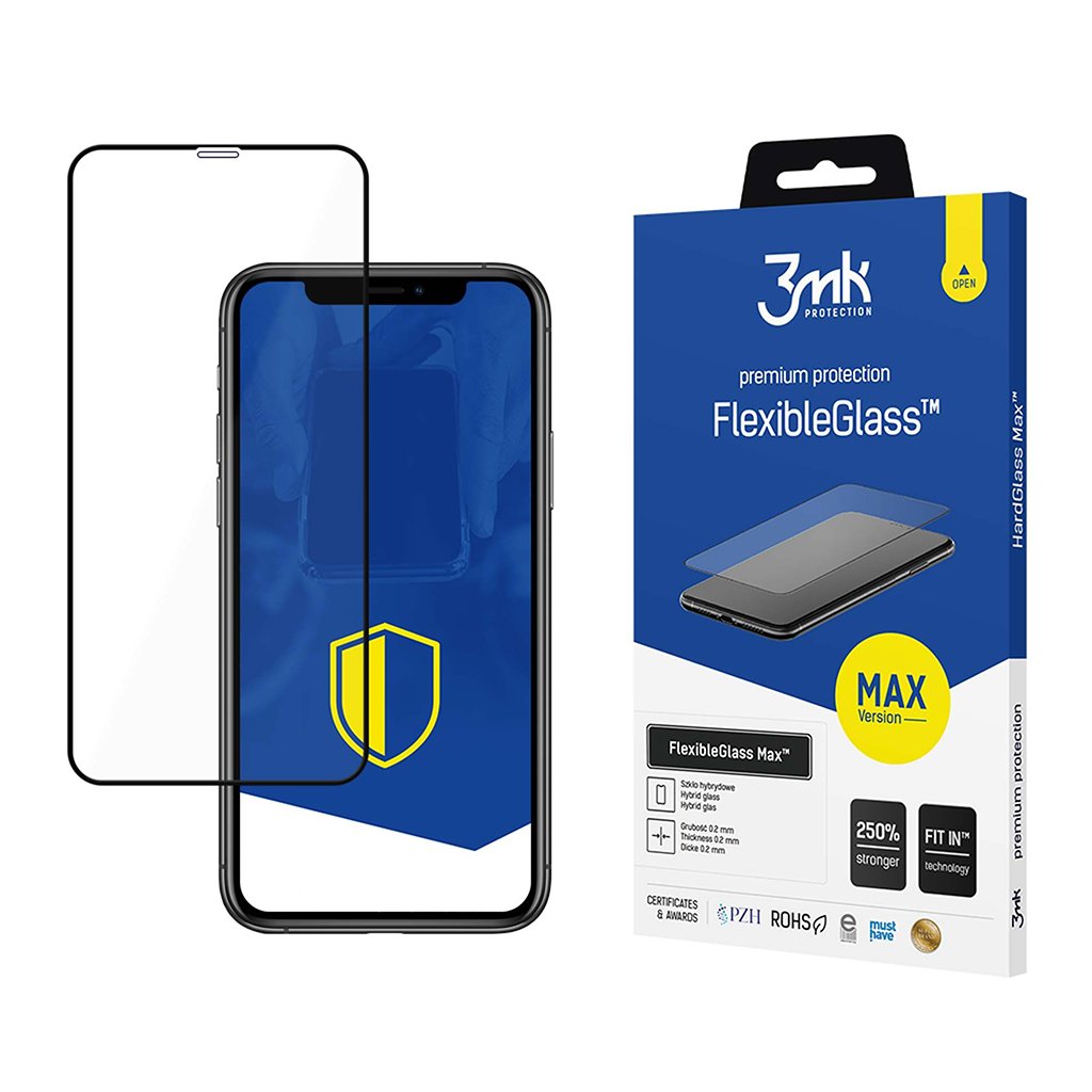3mk FlexibleGlass Max je navrhnuté s ohľadom na precízne pokrytie celého plochého povrchu displeja vášho iPhonu. Vďaka presným výrezom pre hornú senzorovú oblasť (notch) a zaobleným hranám dokonale splynie s dizajnom telefónu a zostane takmer neviditeľné. Jeho čierny okraj elegantne dopĺňa vzhľad zariadenia a zabezpečuje plné pokrytie.