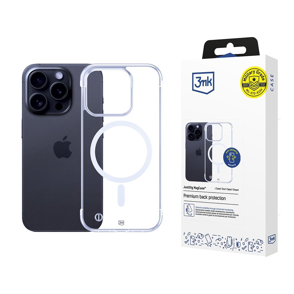 Nenechajte sa zmiasť minimalistickým vzhľadom. 3mk Just20g MagCase poskytuje prémiovú ochranu zadnej strany a spĺňa štandardy Military Grade Drop Test MIL-STD-810H, čo znamená, že váš telefón bude chránený aj v náročných podmienkach.