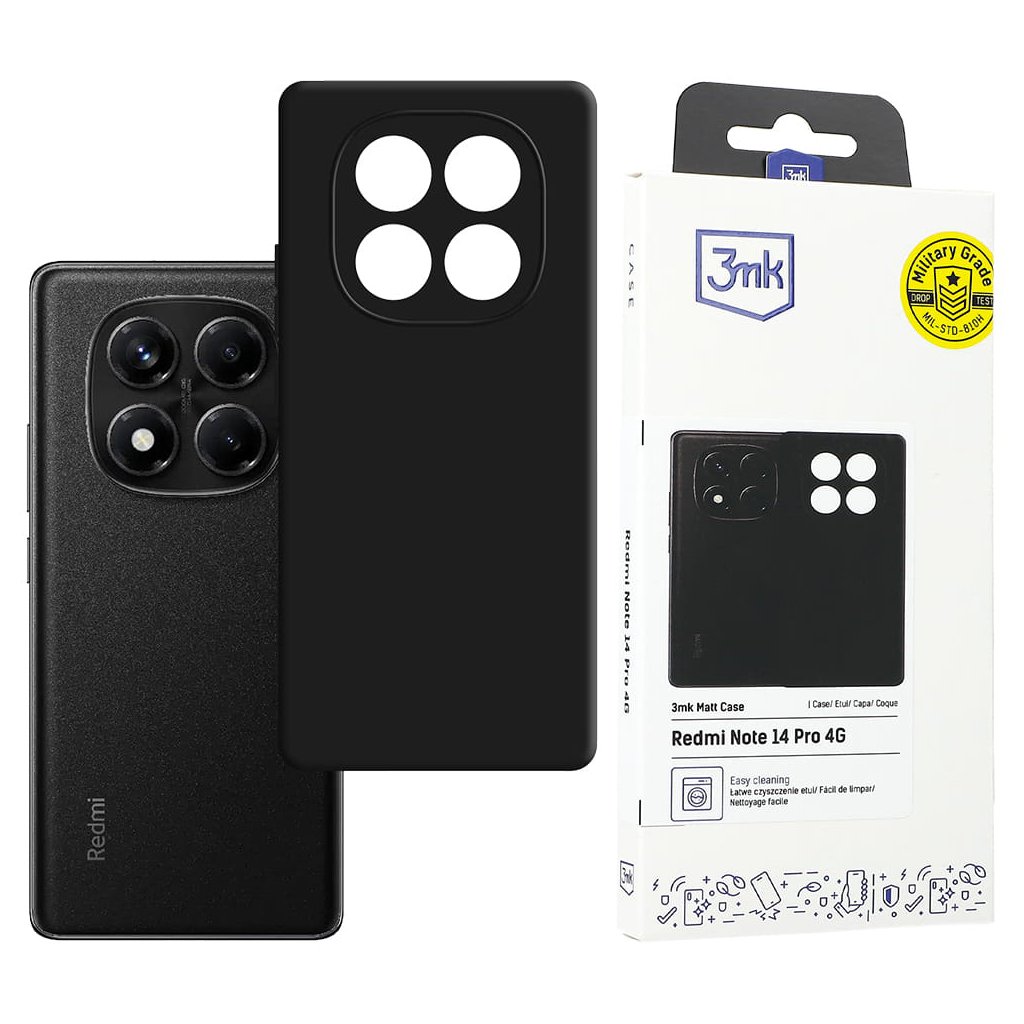 3mk Matt Case pre Xiaomi Redmi Note 14 Pro 4G: Elegantná ochrana v čiernej farbe