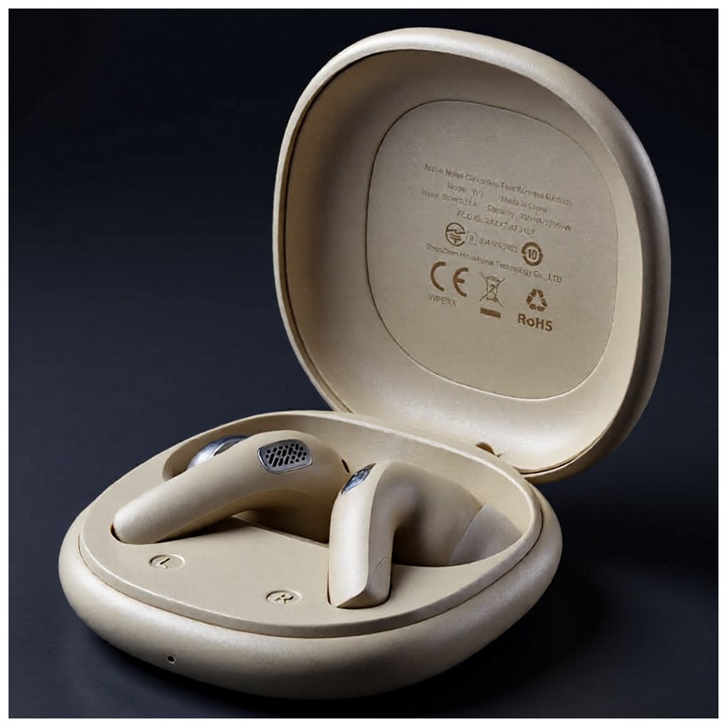 Dizajn slúchadiel Acefast W3 sa vyznačuje modernými a minimalistickými líniami. Slúchadlá typu "pecky" s krátkou stopkou perfektne padnú do ucha a zabezpečujú pohodlie aj pri dlhodobom nosení. Nabíjacie puzdro má zaoblený, oblázkový tvar, ktorý je príjemný na dotyk a ľahko sa zmestí do vrecka. Celý set je vyvedený v elegantnej khaki farbe, ktorá dodáva produktu sofistikovaný a nadčasový vzhľad.