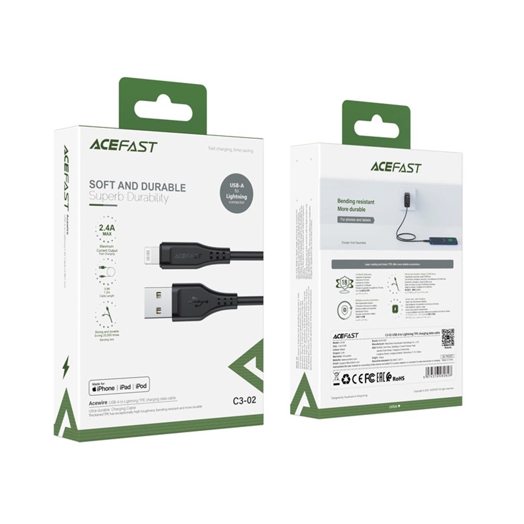 Acefast Datový kábel C3-02 USB na Lightning 2.4A 480Mbps MFi 1.2m čierny