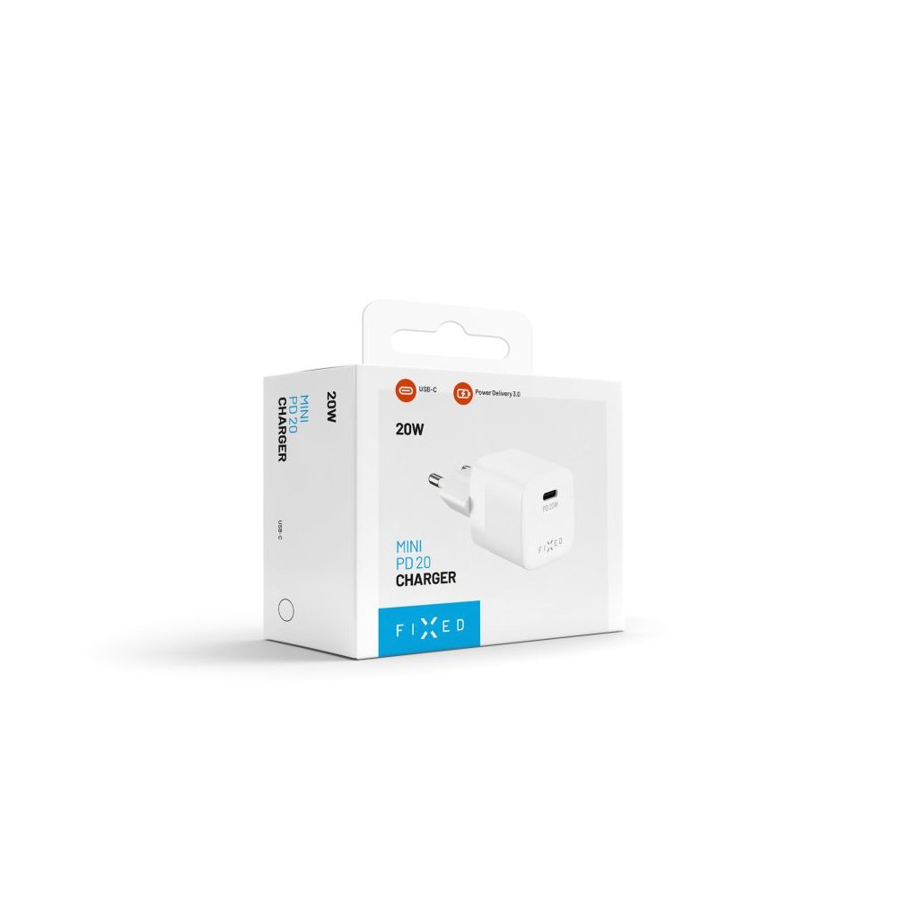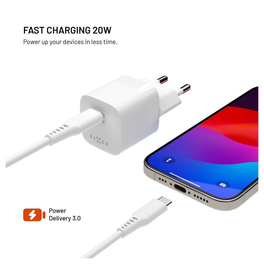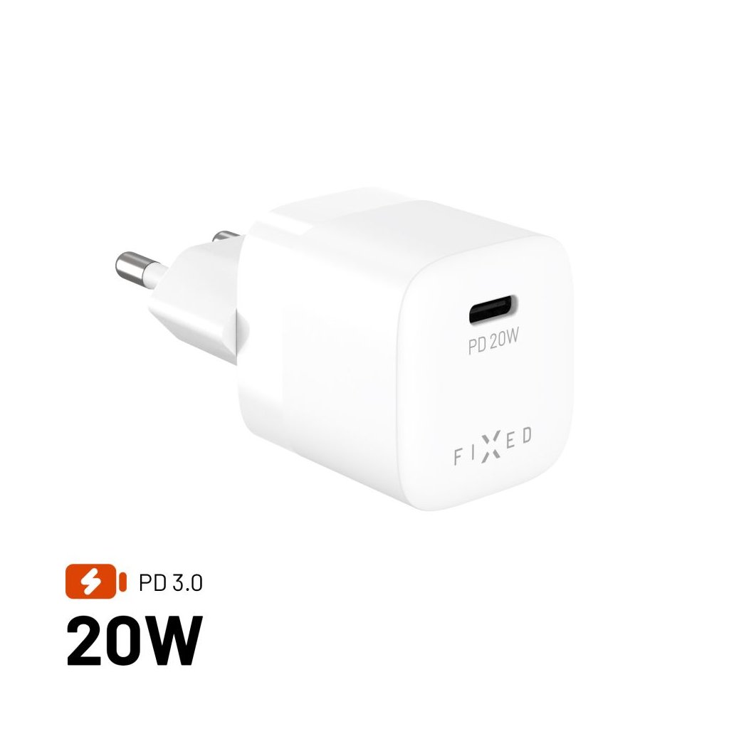 Adaptér FIXED Mini s USB-C výstupom a podporou PD 20W bielyObjavte čaro rýchleho nabíjania s FIXED Mini!