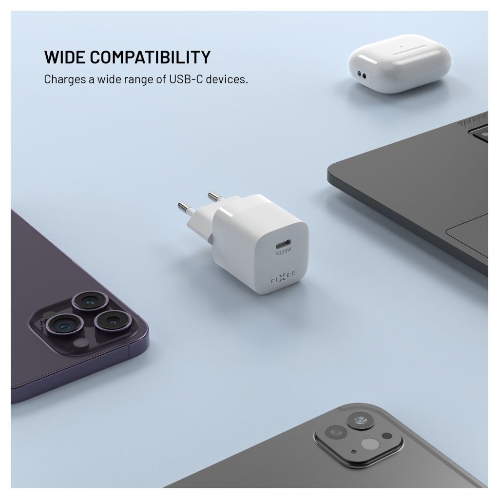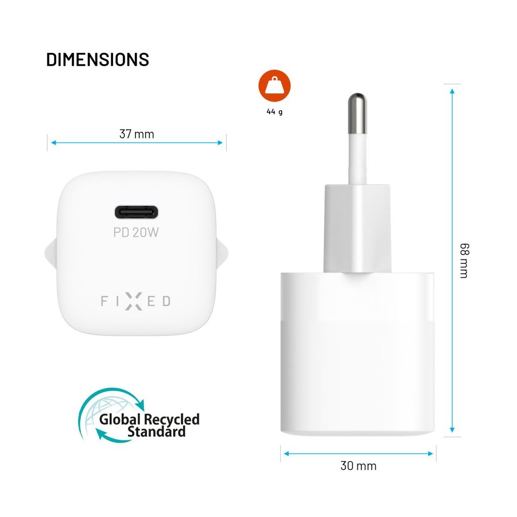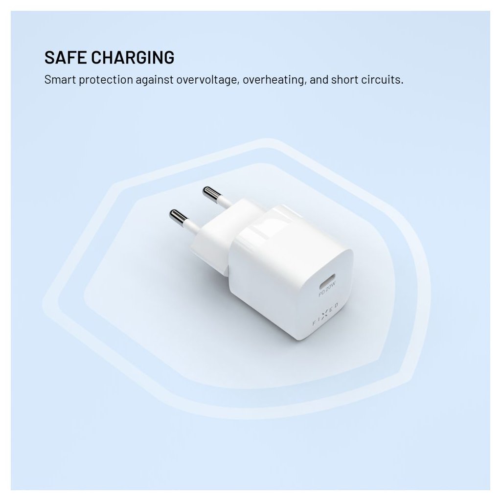 Adaptér FIXED Mini s USB-C výstupom a podporou PD 20W bielyObjavte čaro rýchleho nabíjania s FIXED Mini!