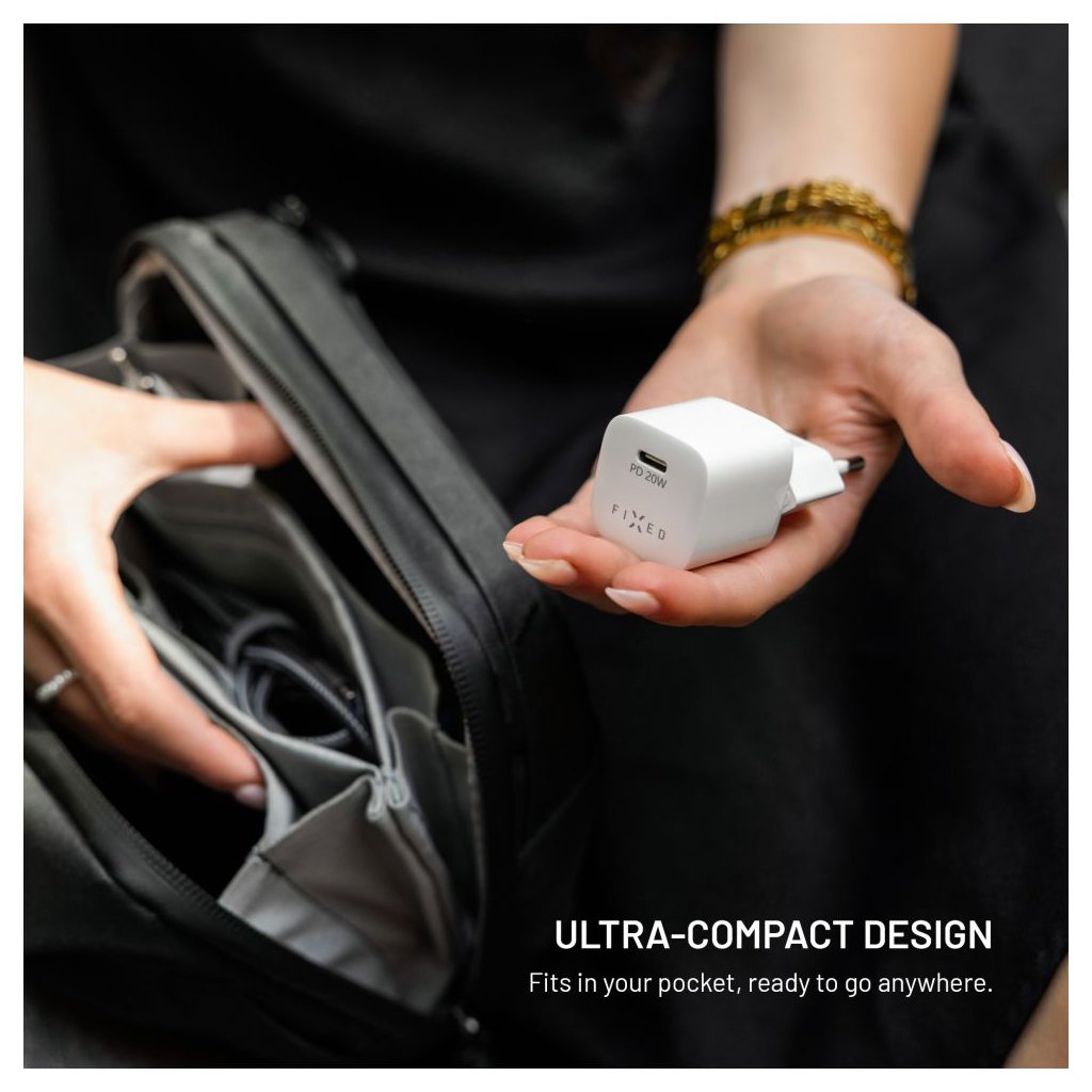 FIXED Mini sa pýši kompaktným a ľahkým prevedením, ktoré ľahko zapadne do každej kabelky či batohu. Jej elegantný biely dizajn sa hodí do akéhokoľvek interiéru a vďaka svojim rozmerom ju ľahko zapojíte aj na horšie dostupné miesta.