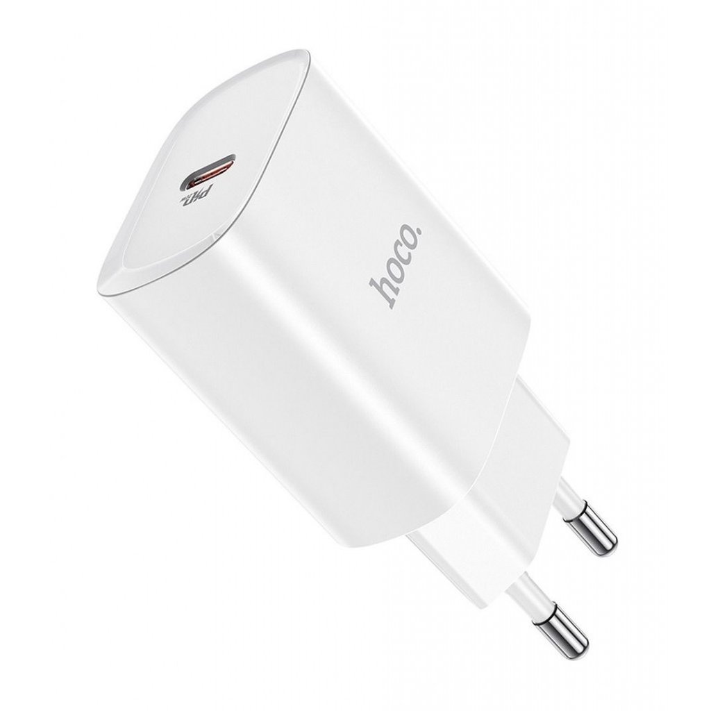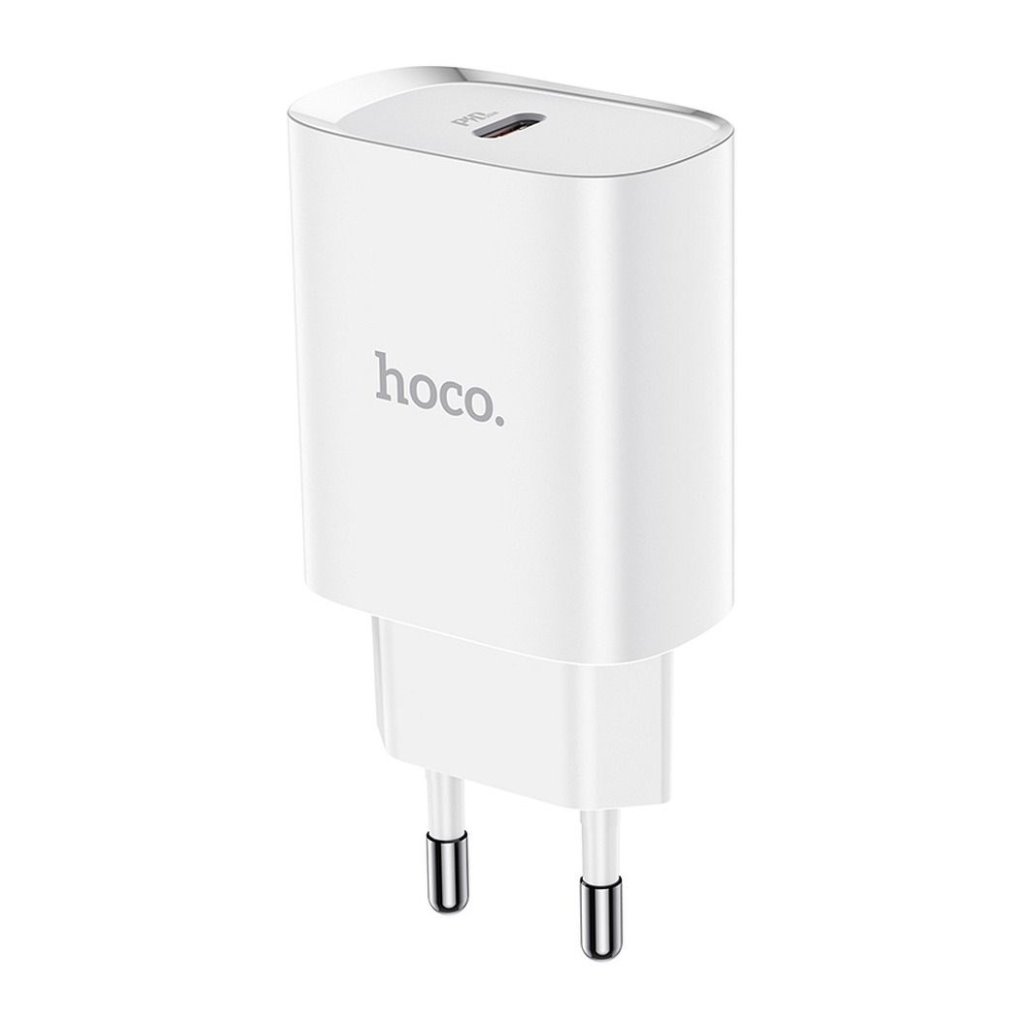 Kompaktný cestovný adaptér HOCO N14 s podporou rýchleho nabíjania 20W v elegantnej bielej farbe. Určený pre bežné sieťové zásuvky európskeho typu, ideálny na nabíjanie smartfónov, tabletov alebo bezdrôtových slúchadiel.