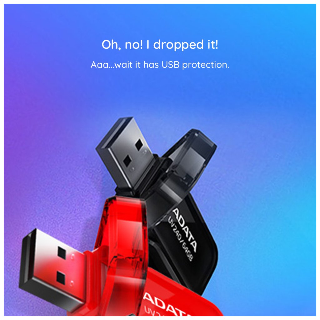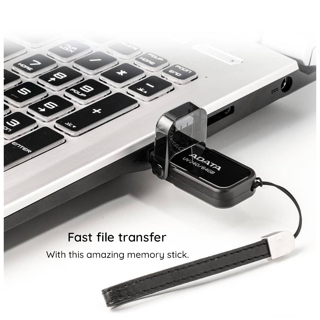 Flash disk Adata UV240 sa pýši minimalistickým a elegantným dizajnom v klasickej čiernej farbe. Jeho kompaktné rozmery a nízka hmotnosť z neho robia ideálneho spoločníka na cesty. Kľúčovým prvkom dizajnu je otočná krytka, ktorá chráni USB konektor pred poškodením a nečistotami, bez toho, aby ste sa museli obávať straty viečka. Vďaka integrovanému očku pre pútko ho ľahko pripevníte ku kľúčom alebo batohu a budete mať svoje dáta vždy po ruke.