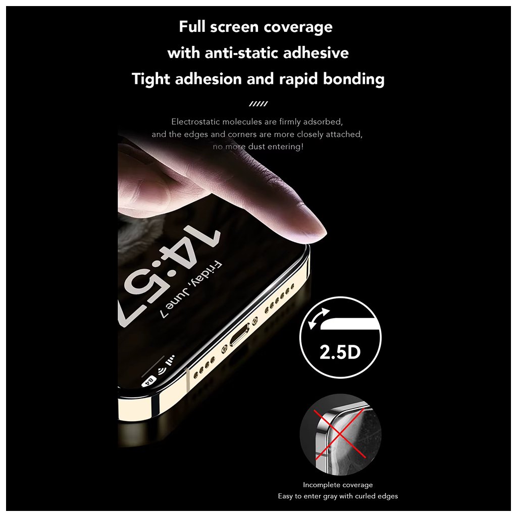 - Elegantný vzhľad: Čierne okraje elegantne splynú s rámčekom telefónu, čím zachovávajú pôvodnú estetiku zariadenia.