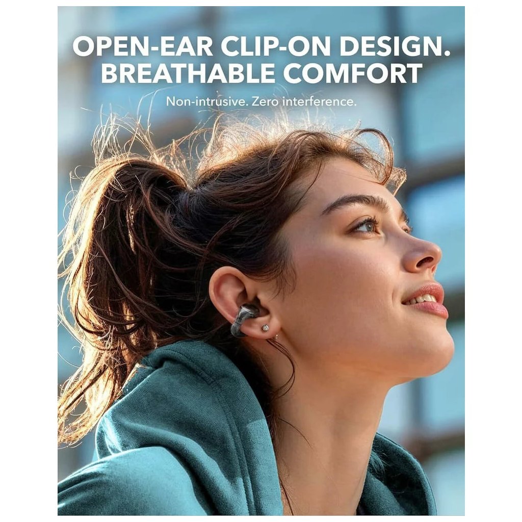 - Inovatívny dizajn s otvoreným uchom a klipom pre priedušné pohodlie a nevtieravé nosenie po celý deň.