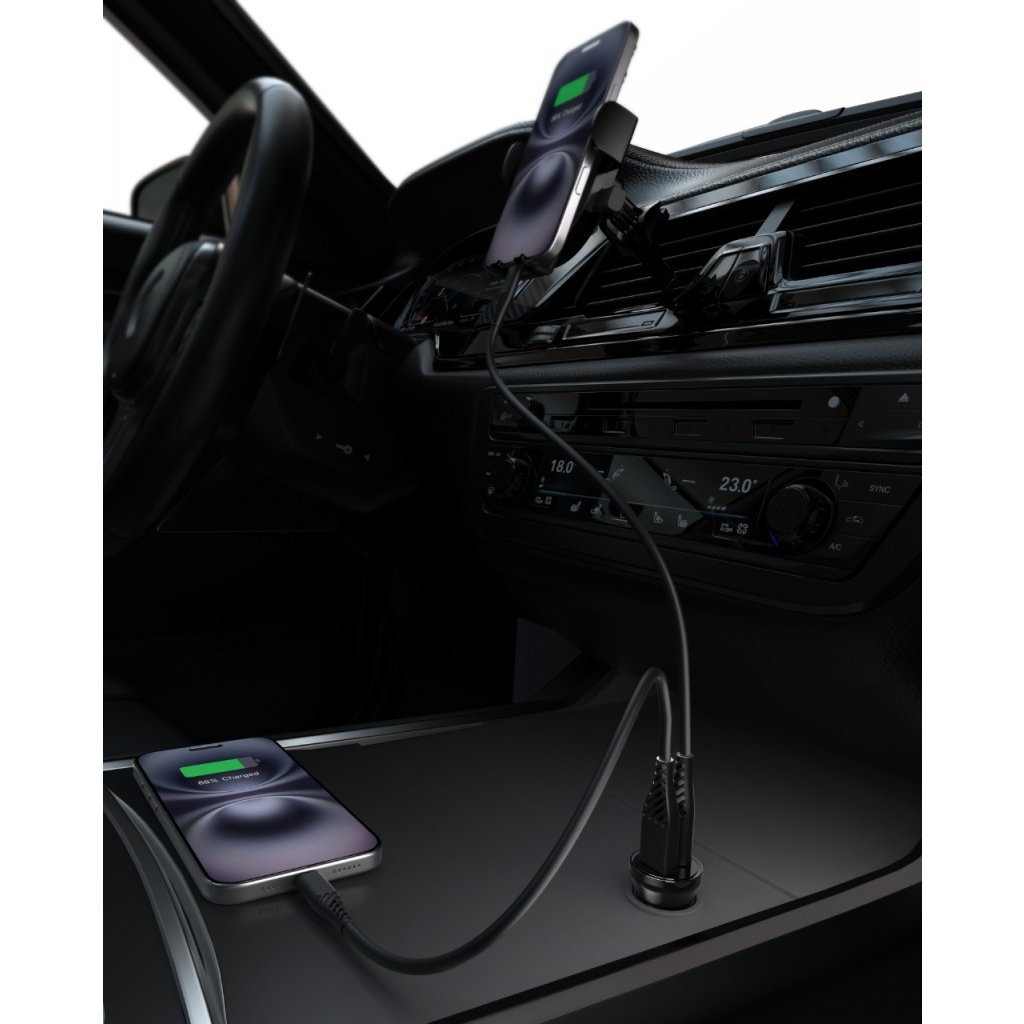 - Kompaktný dizajn — rozmery 25 × 48 mm, nezavadzia v zásuvke zapalovača.