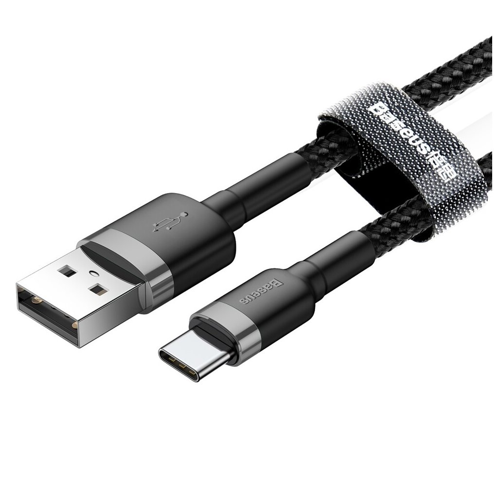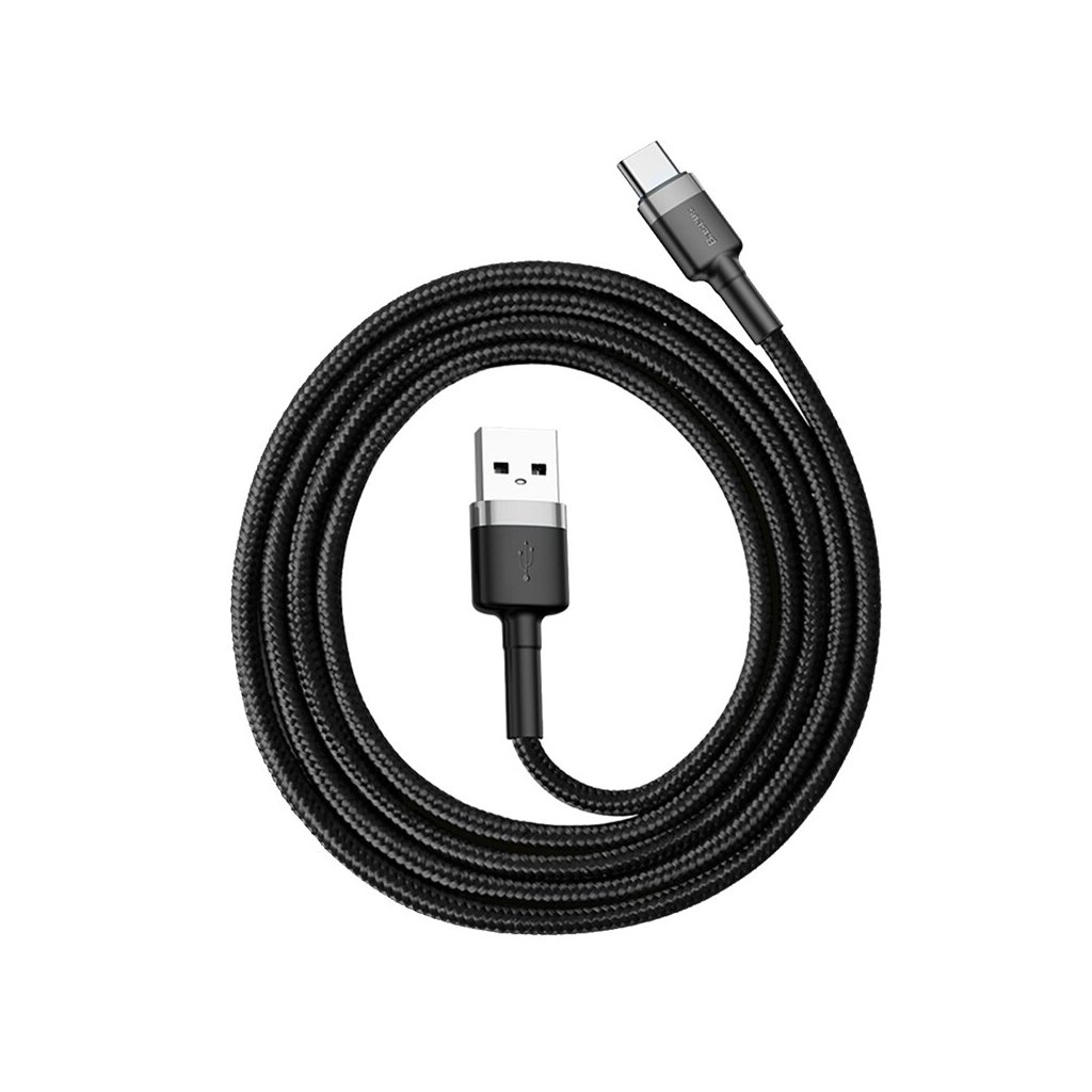 Baseus – Dátový kábel Cafule (CATKLF-BG1) – USB na typ C, 3A, 480Mbps, 1m – šedá / čierna