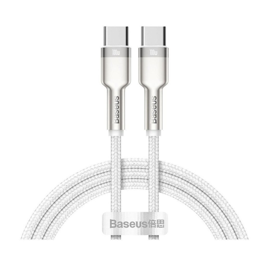 Datový kábel Baseus Cafule Metal - typ C na typ C - PD 100W 5A 1m (CATJK-C02) bielo-strieborný