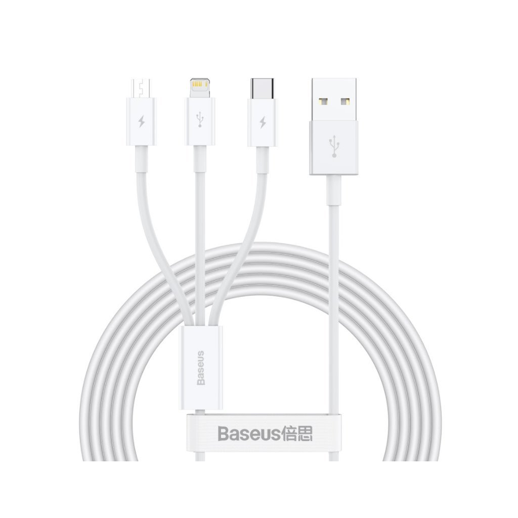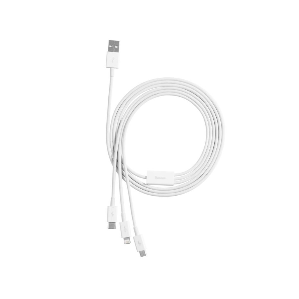 Dátový kábel Baseus CAMLTYS-02 Superior Fast Charging 3v1 USB-C, Lightning, MicroUSB 1,5 m biely