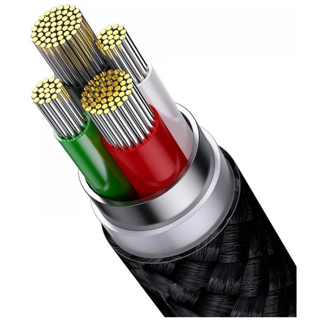 Kábel Baseus StarSpeed sa pýši moderným a minimalistickým dizajnom v čiernej farbe, ktorý podčiarkuje jeho prémiový charakter. Vďaka robustnému nylonovému opleteniu je kábel vysoko odolný proti zamotaniu, ohybu a každodennému opotrebovaniu, čo zaručuje jeho dlhú životnosť. Zosilnené konektory s elegantným kovovým a čiernym prevedením sú navrhnuté tak, aby vydržali opakované pripájanie a odpojovanie bez straty funkčnosti. Vnútorná štruktúra kábla s viacerými izolovanými vodičmi zaisťuje stabilný a efektívny prenos energie a dát. Každý detail bol starostlivo premyslený, aby poskytoval nielen špičkový výkon, ale aj estetický zážitok.