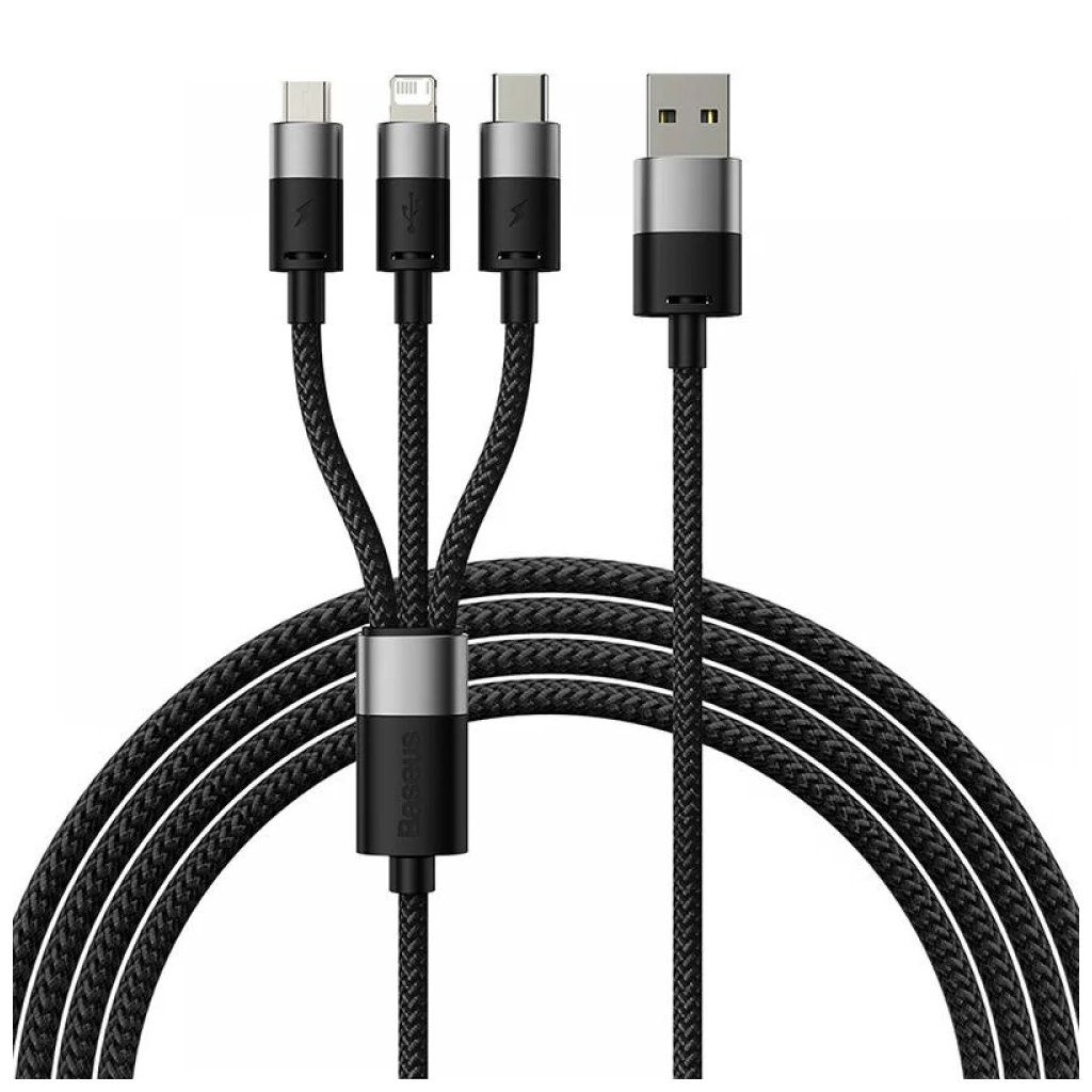 Baseus Data Cable StarSpeed rýchlonabíjací USB na Lightning Micro USB USB C 1.2m čierny