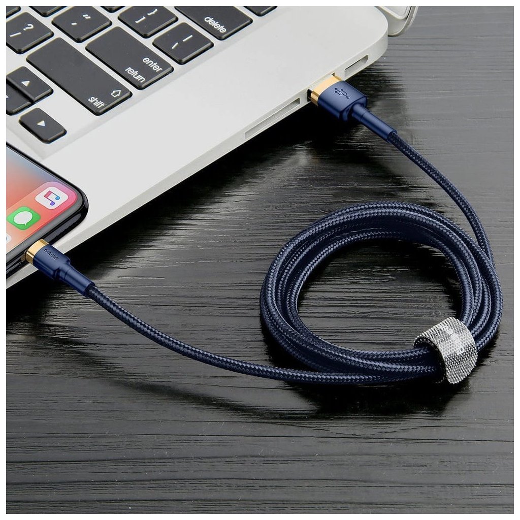 Baseus - dátový kábel Cafule (CALKLF-CV3) - USB na Lightning, QC3.0, 1.5A, 2m - modro-zlatý