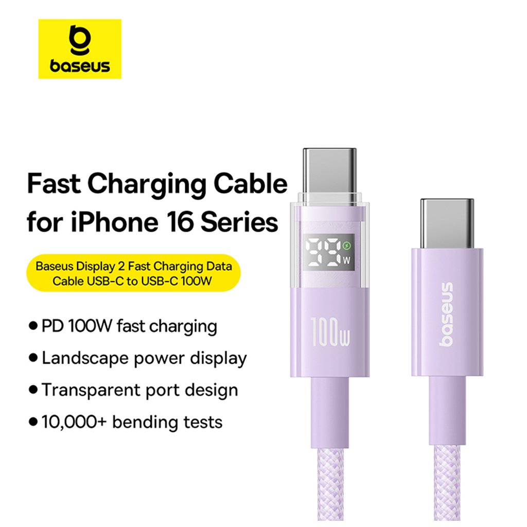 Baseus Dátový Kábel Displej 2 Rýchlonabíjací Typ C na Typ C 100W 1m Fialová