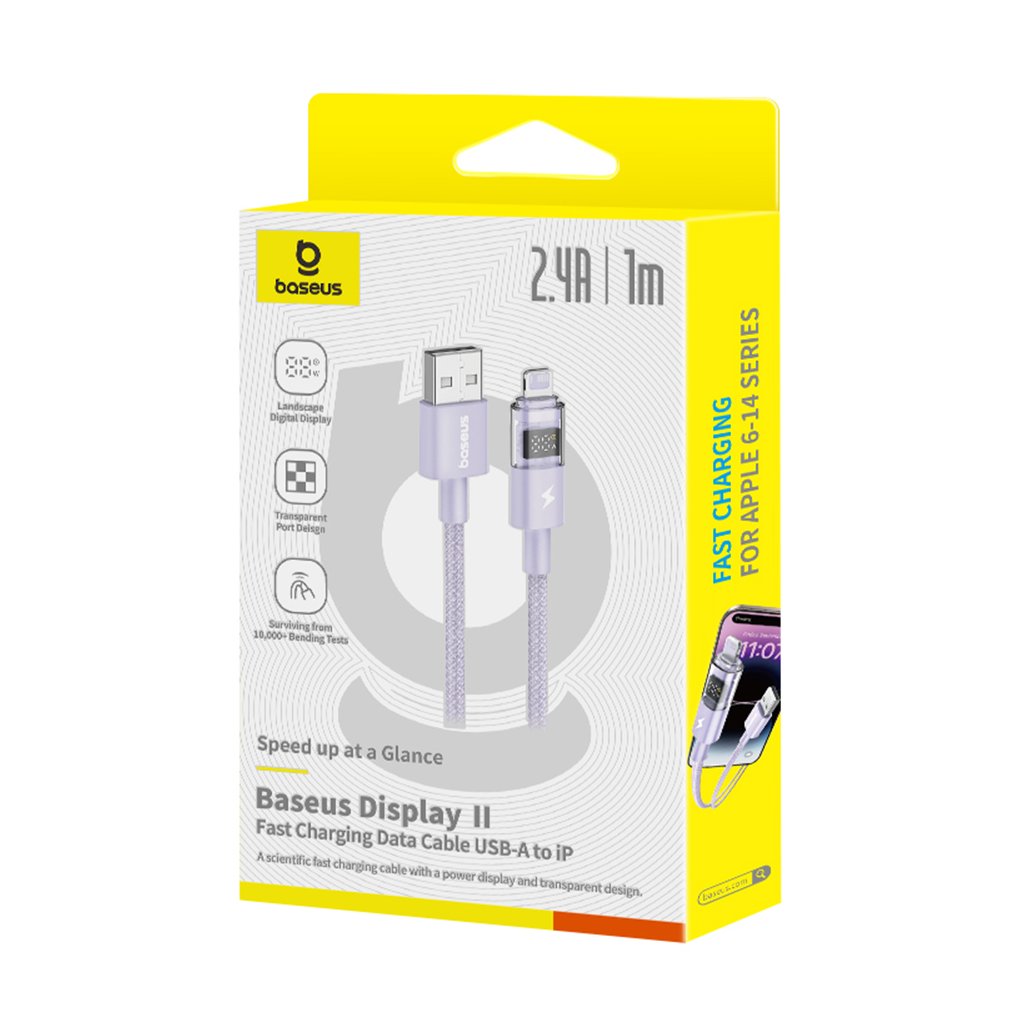Baseus Data Cable Display 2 USB na Lightning - Rýchle nabíjanie 1m Fialová