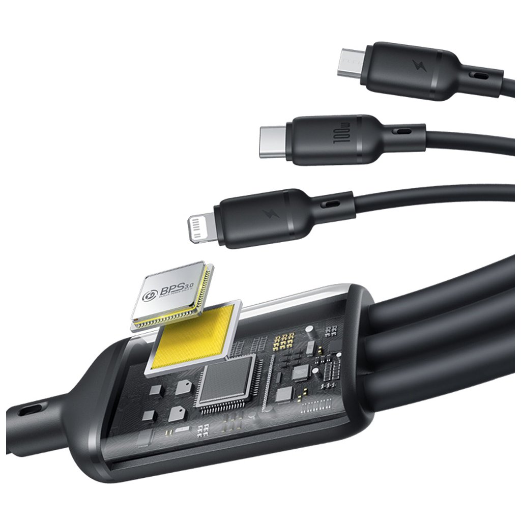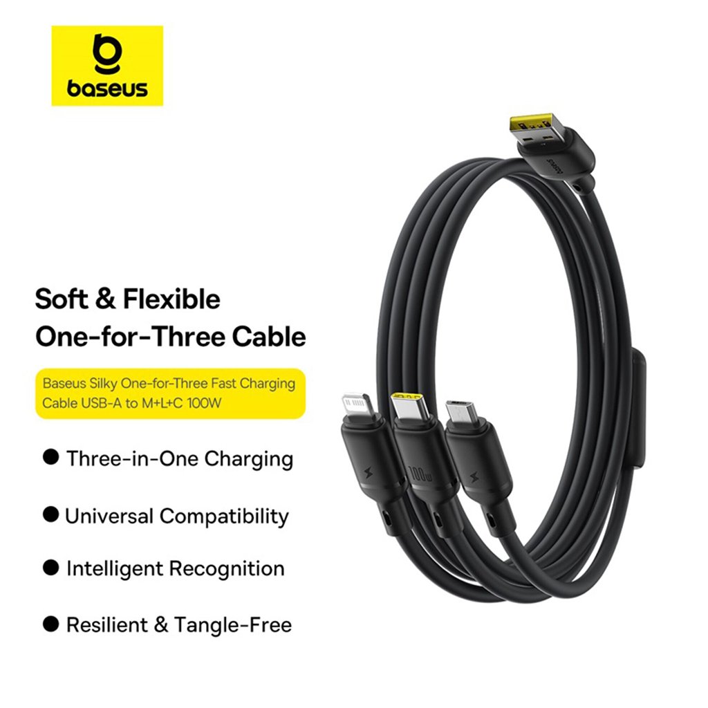 Predstavujeme Baseus Data Cable Silky 1.5m v elegantnej čiernej farbe – revolučné riešenie pre nabíjanie a synchronizáciu dát, ktoré eliminuje potrebu niekoľkých rôznych káblov. Tento inovatívny kábel "tri v jednom" je navrhnutý tak, aby splnil požiadavky moderného používateľa, ktorý ocení flexibilitu, výkon a minimalizmus.