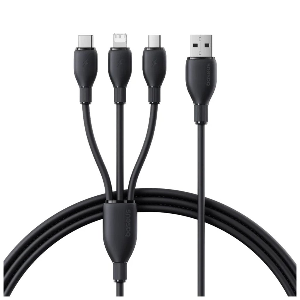 Predstavujeme vám Baseus Ultra-Fast rychlonabíjecí kábel, ktorý predstavuje revolučné riešenie pre nabíjanie a synchronizáciu dát vašich zariadení. Tento inovatívny kábel 3v1 eliminuje potrebu nosiť so sebou niekoľko rôznych káblov, keďže kombinuje konektory Lightning, Micro-USB a USB-C do jedného elegantného celku.