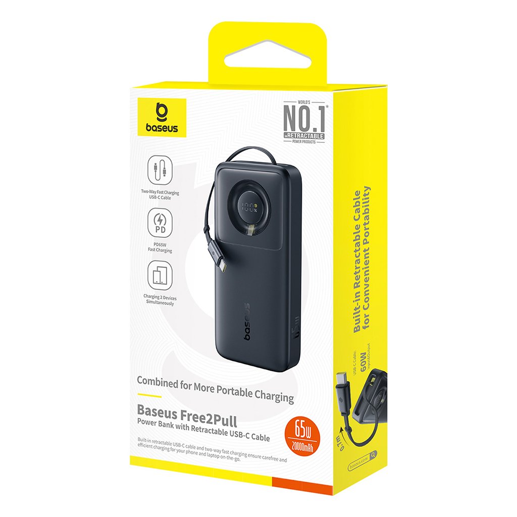 Baseus Power Bank Free2Pull s USB-C káblom 20000mAh 65W čierna