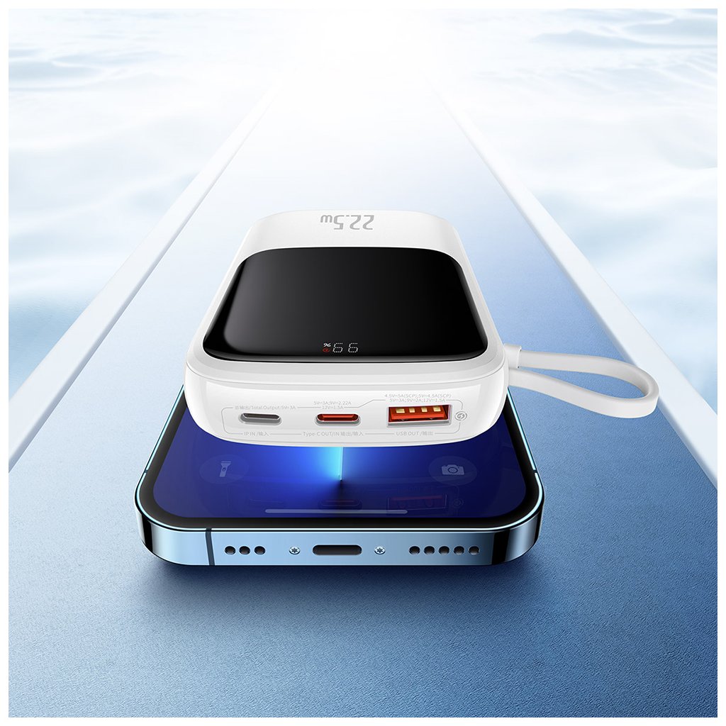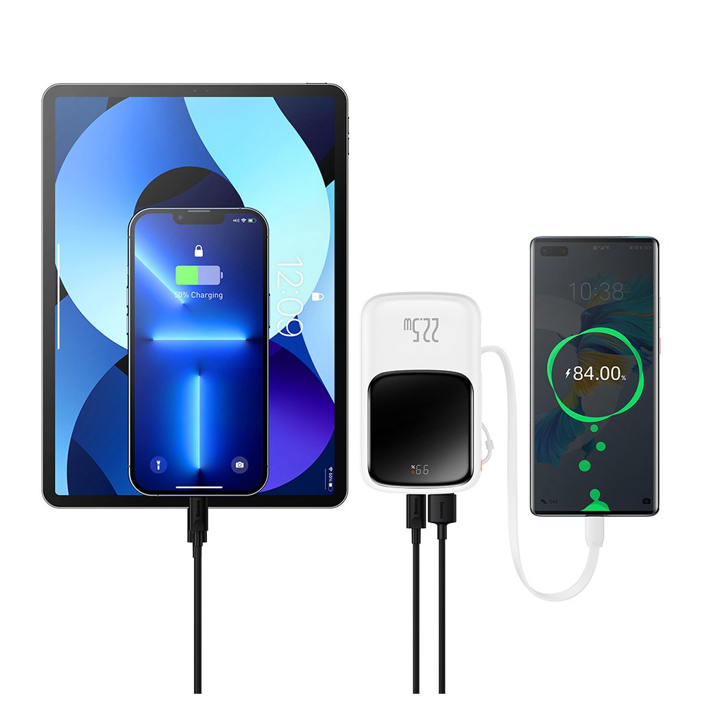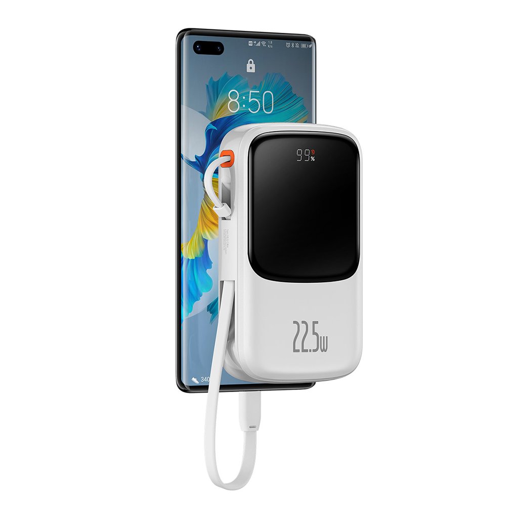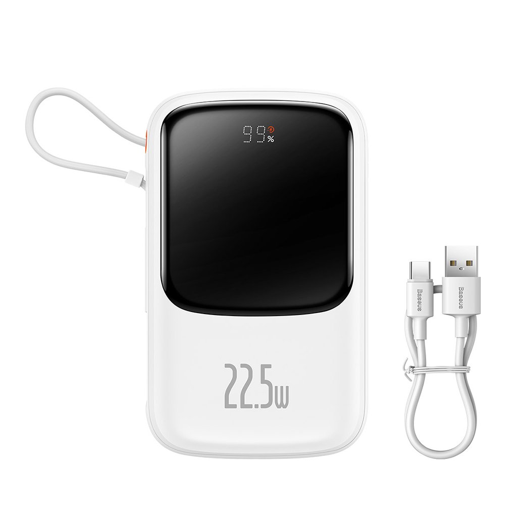 Powerbanka Baseus Qpow Pro sa pýši minimalistickým a moderným dizajnom, ktorý dokonale zapadne do vášho životného štýlu. Jej kompaktné rozmery (117 x 70.6 x 25 mm) a nízka hmotnosť (približne 236 g) z nej robia ideálneho spoločníka na cesty, do práce aj na každodenné použitie. Vyrobená je z odolných materiálov ABS a PC, ktoré zaručujú dlhú životnosť a odolnosť proti poškodeniu. Na tele powerbanky nájdete integrovaný USB-C kábel, ktorý je elegantne uložený a pripravený na okamžité použitie, čo eliminuje potrebu nosiť ďalšie káble. Digitálny LED displej prehľadne zobrazuje zostávajúcu kapacitu batérie, takže vždy viete, koľko energie vám ešte zostáva.
