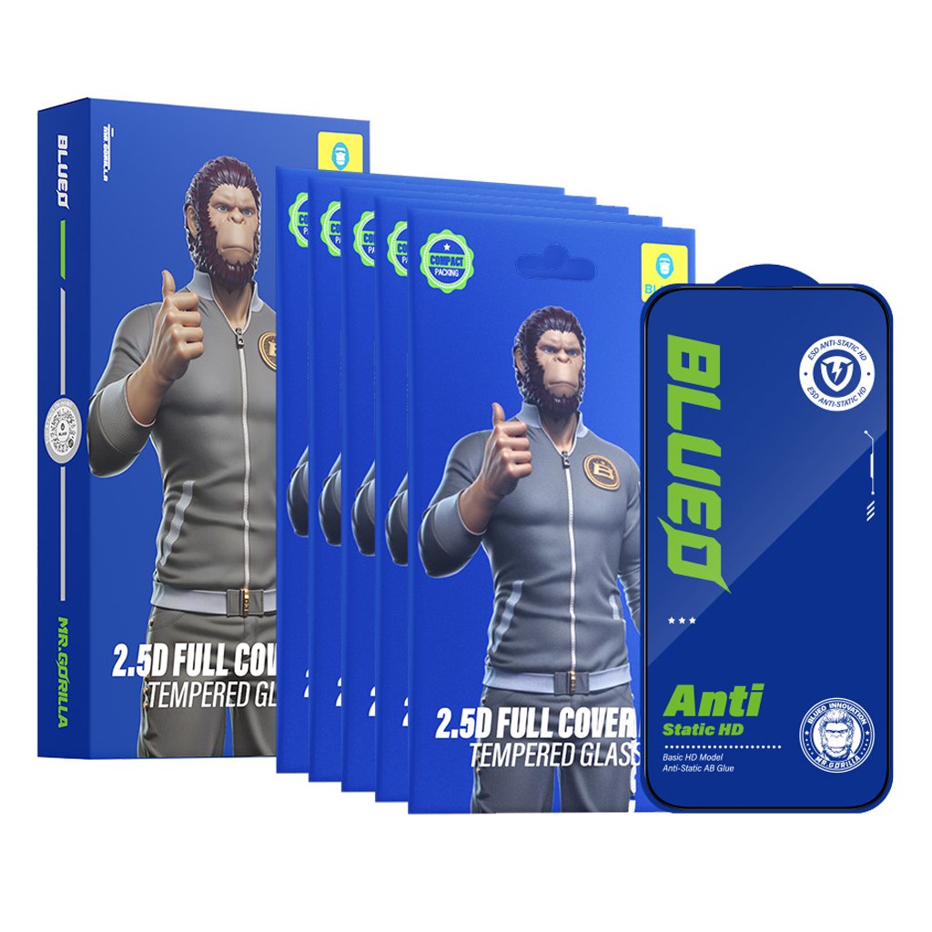 Dizajn produktu odráža dôraz značky Blueo na kvalitu a odolnosť. Balenie, ktoré je vyvedené v sýto modrej farbe s výrazným logom a maskotom "Mr. Gorilla", symbolizuje silu a spoľahlivosť. Samotné sklo je precízne spracované s 2.5D zaoblenými hranami, ktoré zaisťujú hladký prechod a komfortné držanie bez ostrých okrajov.