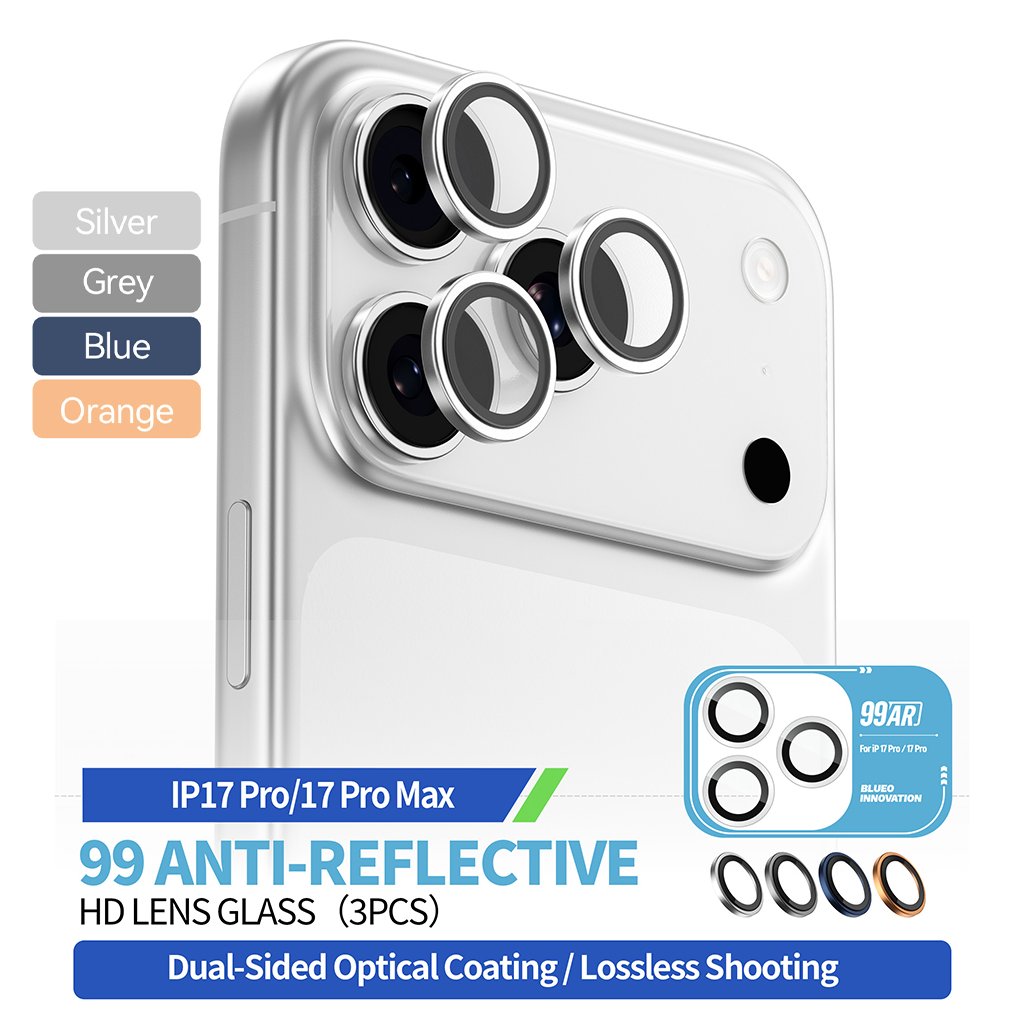 Blueo 99 antireflexné sklo na objektív iPhone 17 Pro iPhone 17 Pro Max strieborné