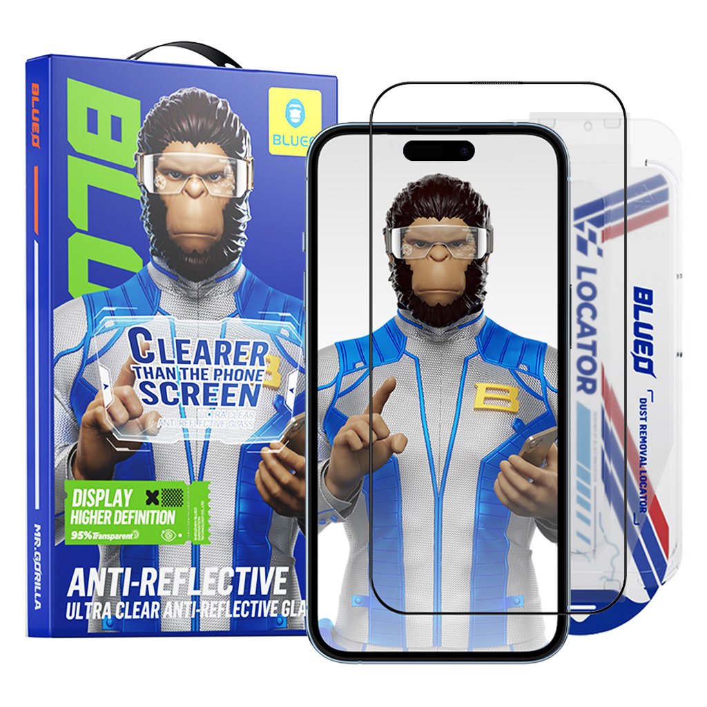 Blueo antireflexné HD sklo s aplikátorom pre iPhone 16 Pro/17/17 Pro čierne
