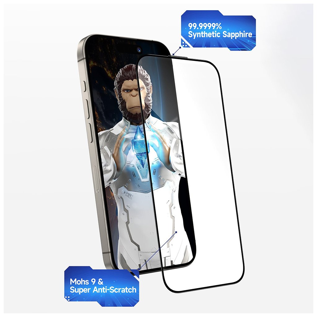 * **Extrémna Odolnosť proti Poškriabaniu:** S tvrdosťou **9H na Mohsovej stupnici** je toto sklo prakticky nepoškriabateľné. Kľúče, mince, dokonca aj nôž – nič z toho neohrozí integritu vášho displeja. * **Nerozbitná Ochrana:** Vyrobené z **99.999% syntetického zafíru**, materiálu známeho svojou výnimočnou pevnosťou a odolnosťou proti nárazom. Efektívne chráni displej pred prasknutím pri pádoch a náhodných úderoch. * **Dokonalá Optická Čistota:** Ultra tenká konštrukcia a vysoká priehľadnosť zaručujú, že si váš displej zachová pôvodný jas, sýtosť farieb a ostrosť obrazu. Zabudnite na skreslenie alebo zníženú citlivosť dotyku. * **Celoplošné Krytie:** Sklo je navrhnuté pre **celoplošné krytie displeja**, dokonale kopíruje tvar obrazovky a poskytuje komplexnú ochranu od okraja po okraj. * **Precízne Výrezy:** Obsahuje precízne výrezy pre prednú kameru a senzory, čím zabezpečuje plnú funkčnosť bez akýchkoľvek kompromisov. * **Elegantný Dizajn:** **Čierne okraje skla** elegantne splynú s rámčekom vášho iPhonu 17 Air a dotvárajú tak jeho sofistikovaný vzhľad. * **Oleofóbna Vrstva:** Integrovaná oleofóbna vrstva minimalizuje ulpievanie odtlačkov prstov a mastnoty, udržuje displej čistý a ľahko sa čistí. * **Antistatická Úprava:** Antistatická úprava uľahčuje inštaláciu bez prachových častíc, čo zaručuje bezchybnú aplikáciu.Parametre Produktu