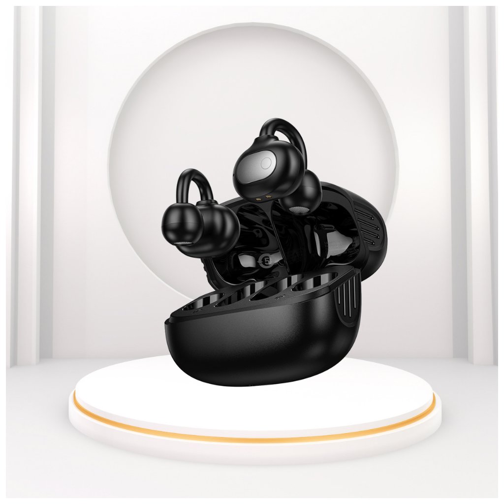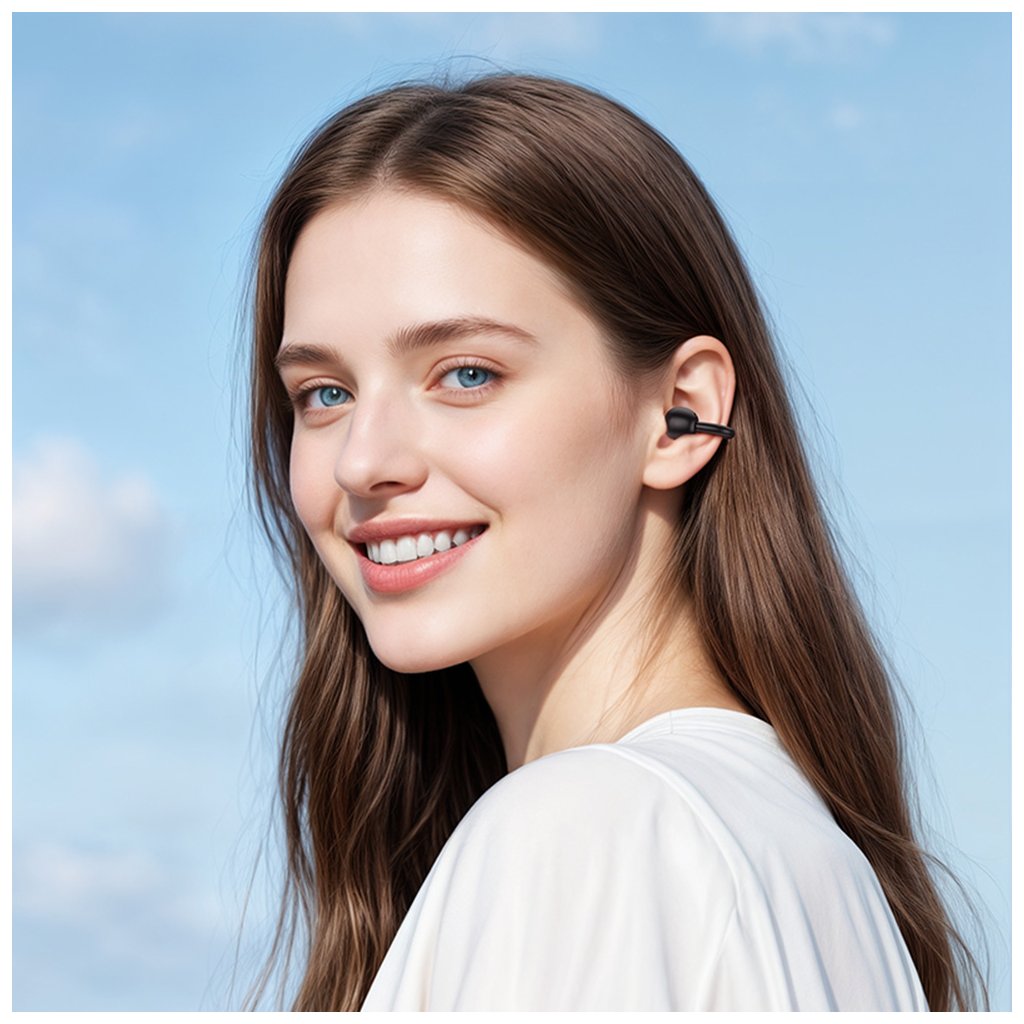 Dizajn slúchadiel Joy FQ14 je premyslený do posledného detailu. Ide o inovatívny "ear-clip" typ, ktorý sa bezpečne a pohodlne prichytí k uchu bez toho, aby tlačil do zvukovodu. Ich kompaktný a minimalistický vzhľad v matne čiernej farbe sa ľahko zladí s akýmkoľvek štýlom. Nabíjacie puzdro je rovnako elegantné a praktické, ľahko sa zmestí do vrecka a poskytuje dodatočnú energiu pre vaše slúchadlá na cestách. Ergonomický tvar a nízka hmotnosť zaručujú komfort aj pri dlhodobom nosení.