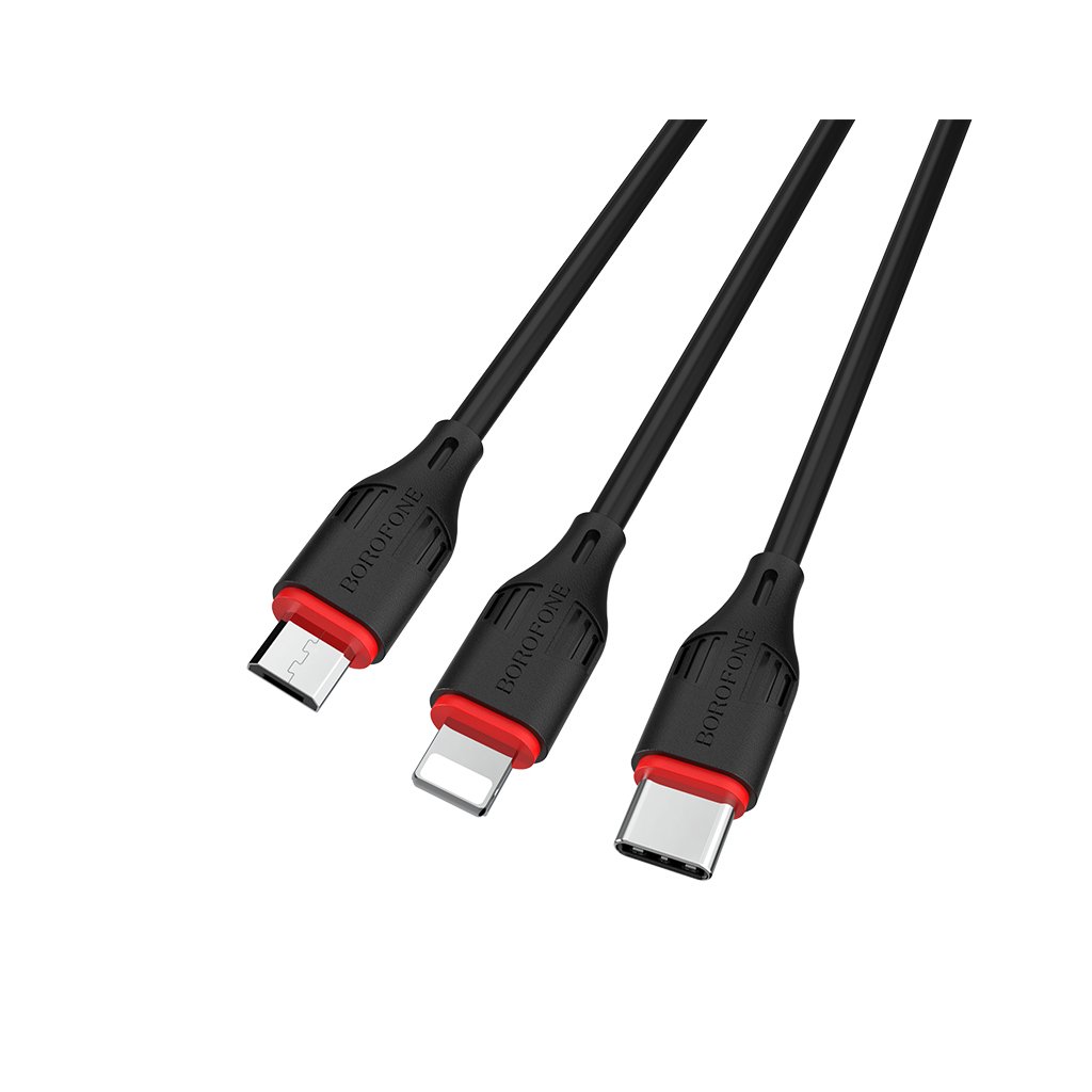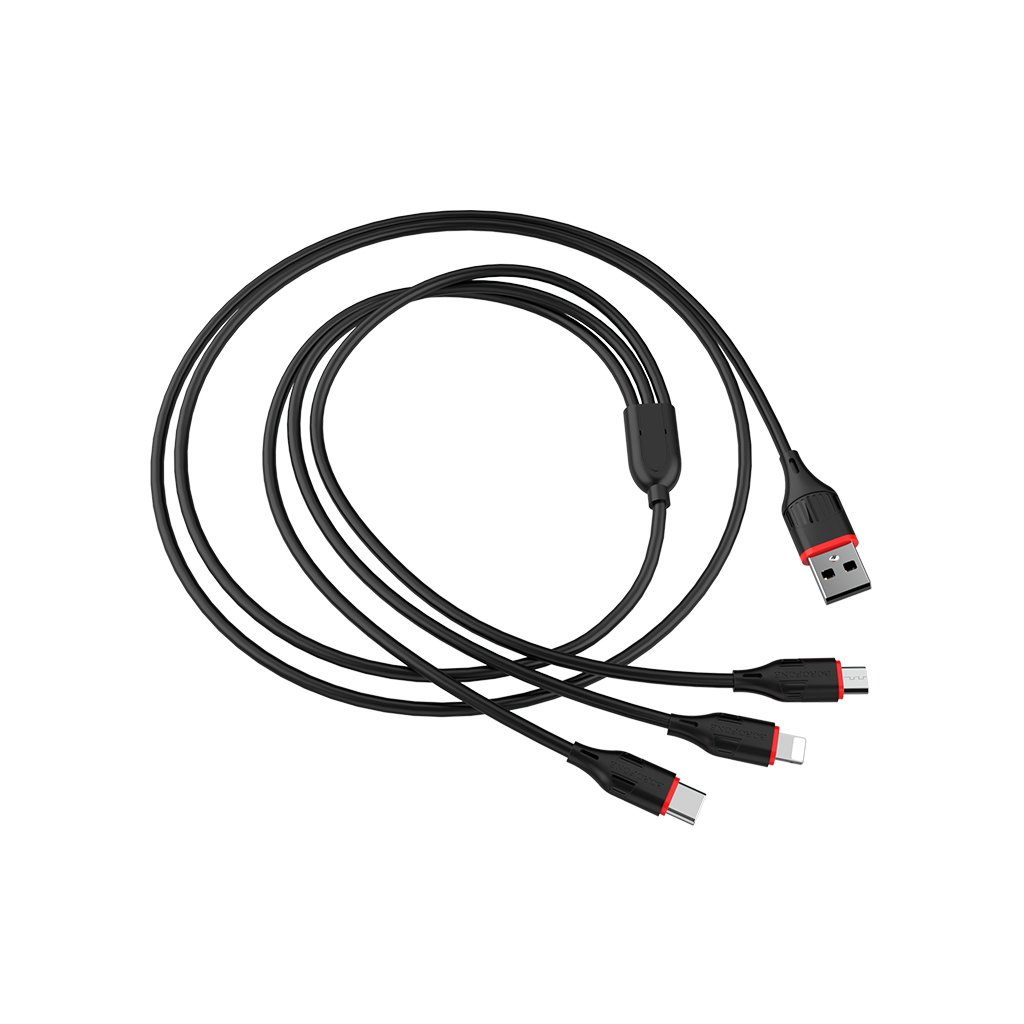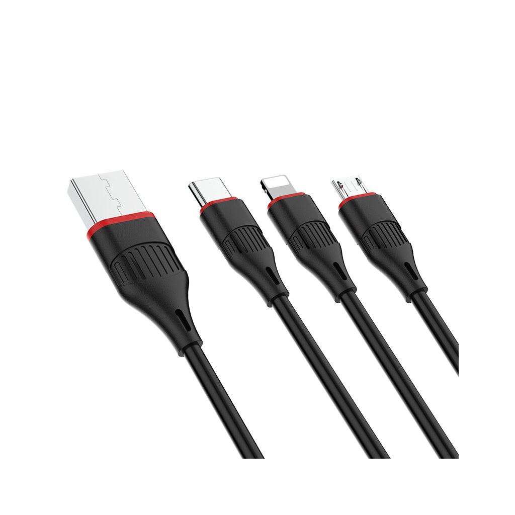 Dátový kábel Borofone BX17 Enjoy 3 v 1 - USB na typ C, Micro USB, Lightning - 2,4 A 1 meter čierny