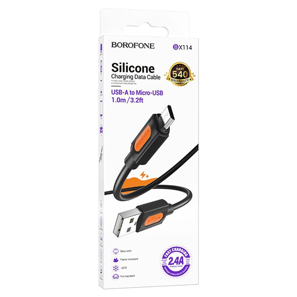 Borofone Dátový Kábel Silikónová Séria BX114 USB na Micro USB silikónové 2.4A 1m čierny