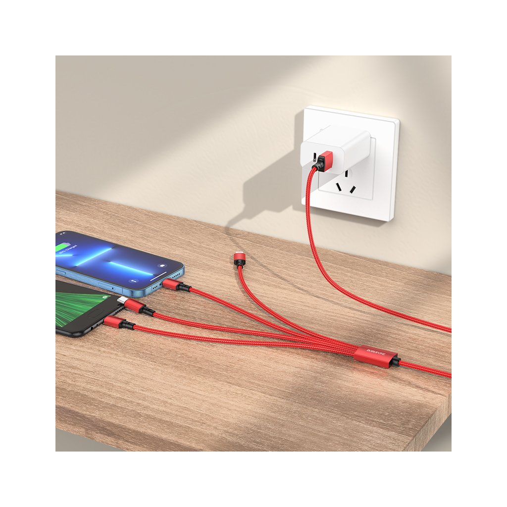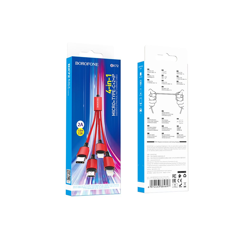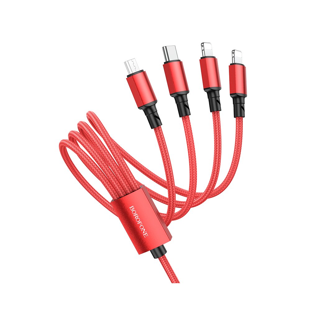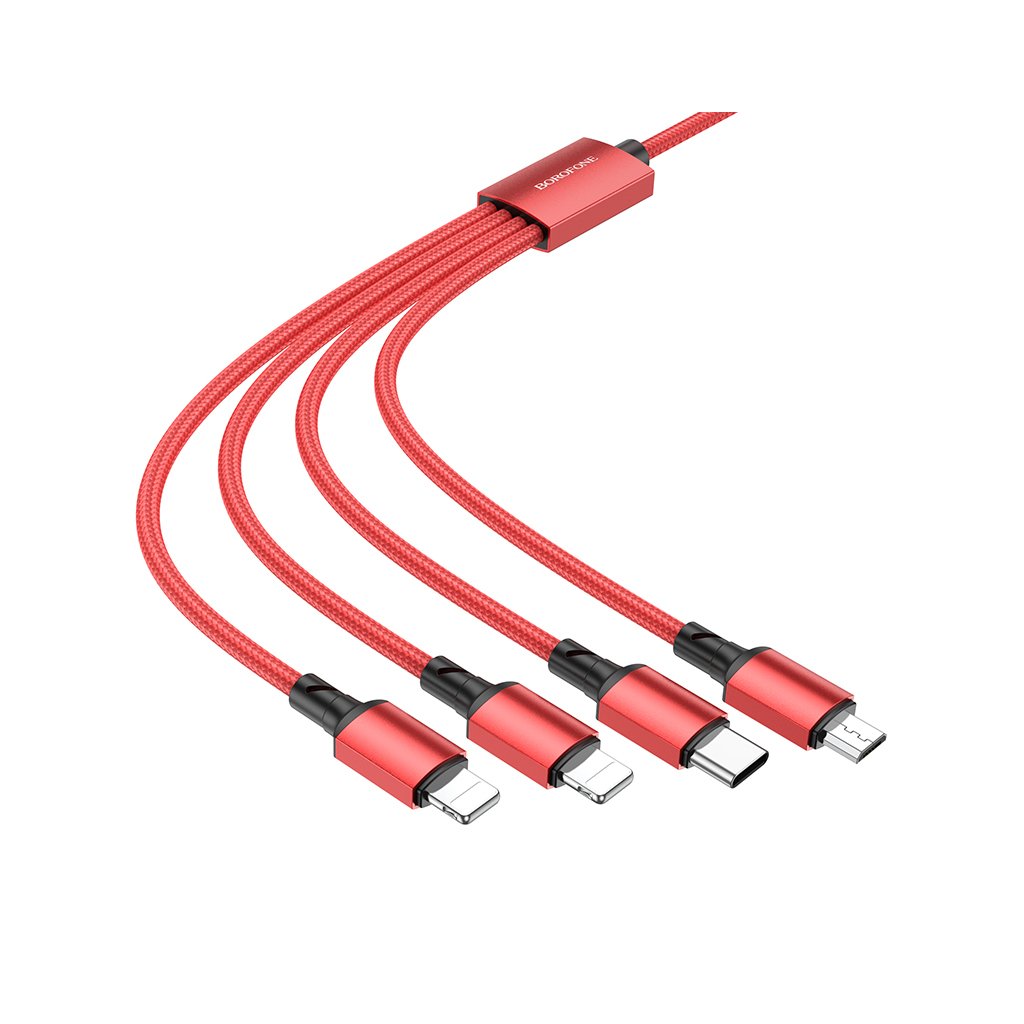 Dátový kábel Borofone BX72 4 v 1 - USB na typ C, Micro USB, 2xLightning - 2A 1 meter červený