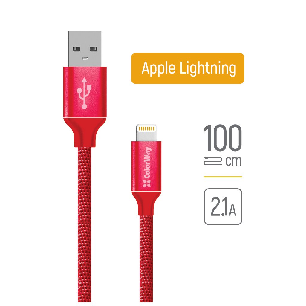 ColorWay dátový kábel USB 2.0 na Apple Lightning 1m červený