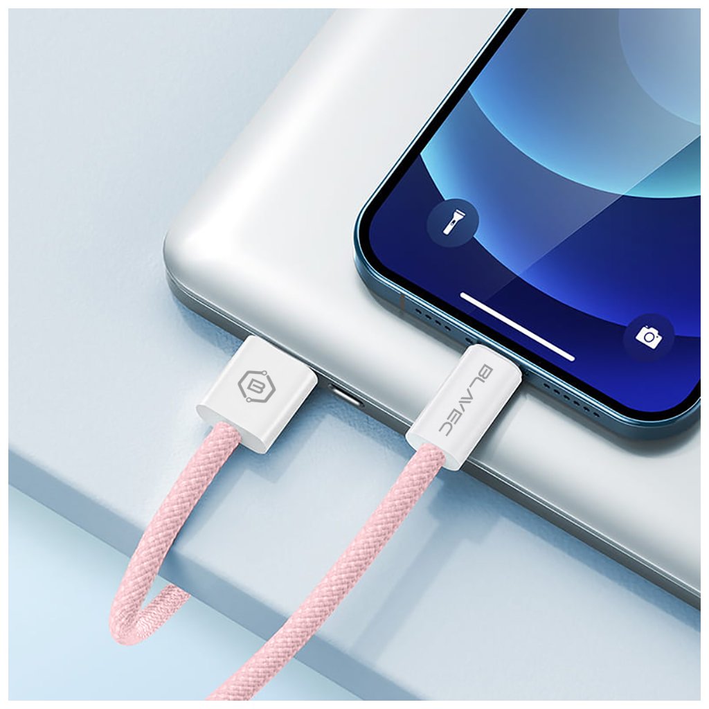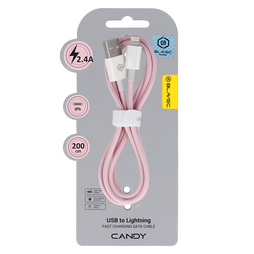 Dátový kábel Blavec Candy Braided USB-A - Lightning 2,4 A 2 m (CCA-UL24P20) ružovýBlavec Candy Braided Data Cable