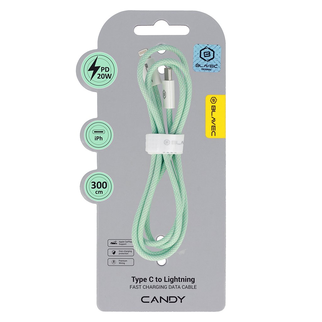 Dátový kábel Blavec Candy Braided USB-C - Lightning PD 20 W 2,4 A 3 m (CCA-CL24GN30) zelenýBlavec Candy Braided — technický a štýlový spoločník pre vaše zariadenia
