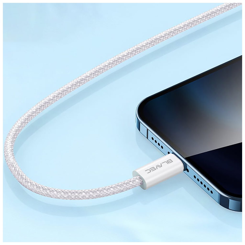 Dátový kábel Blavec Candy Braided USB-C - Lightning PD 20W 2,4A 3m (CCA-CL24W30) biely