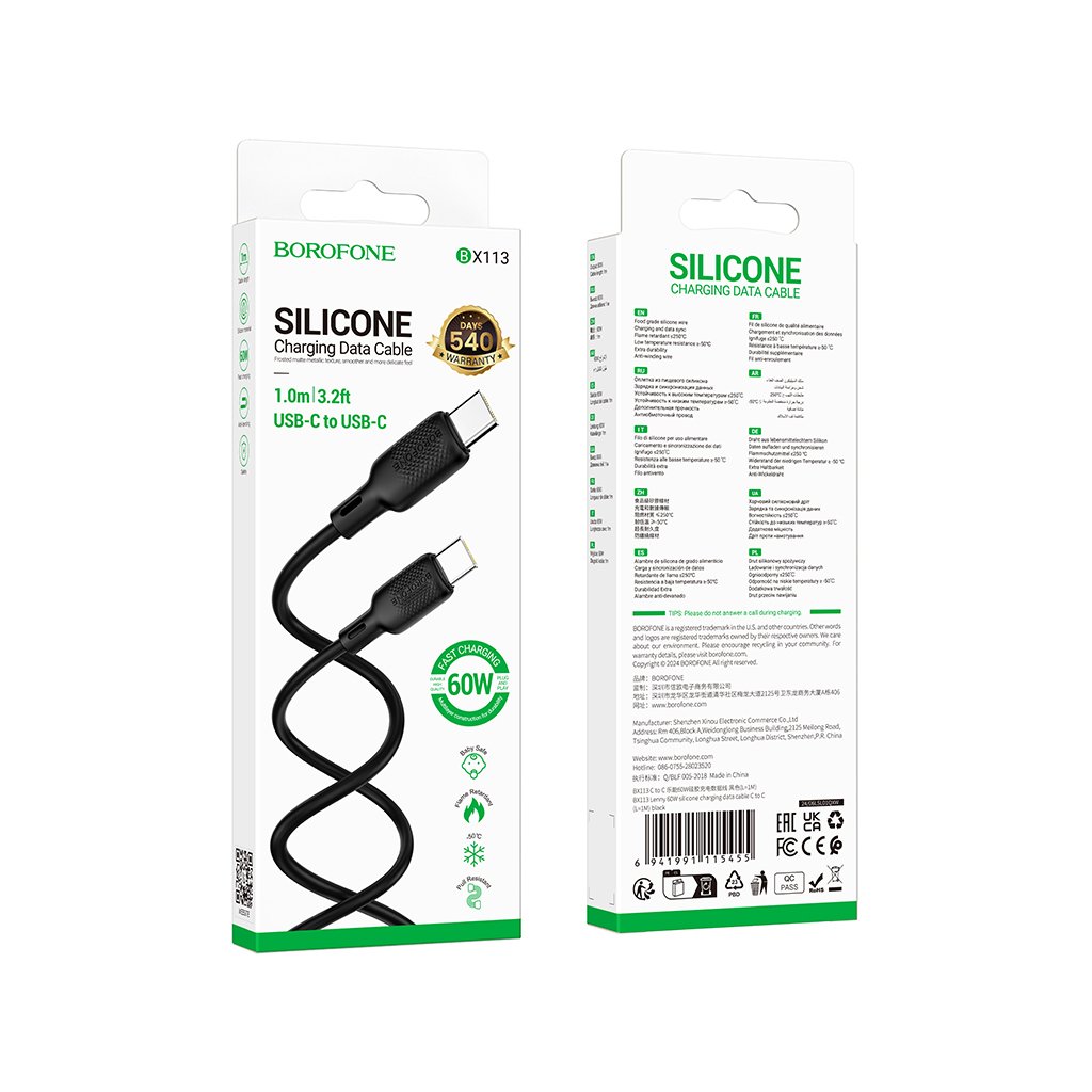 Dátový kábel Borofone BX113 Lenny USB-C – USB-C PD 60W 3A 3 m čierny