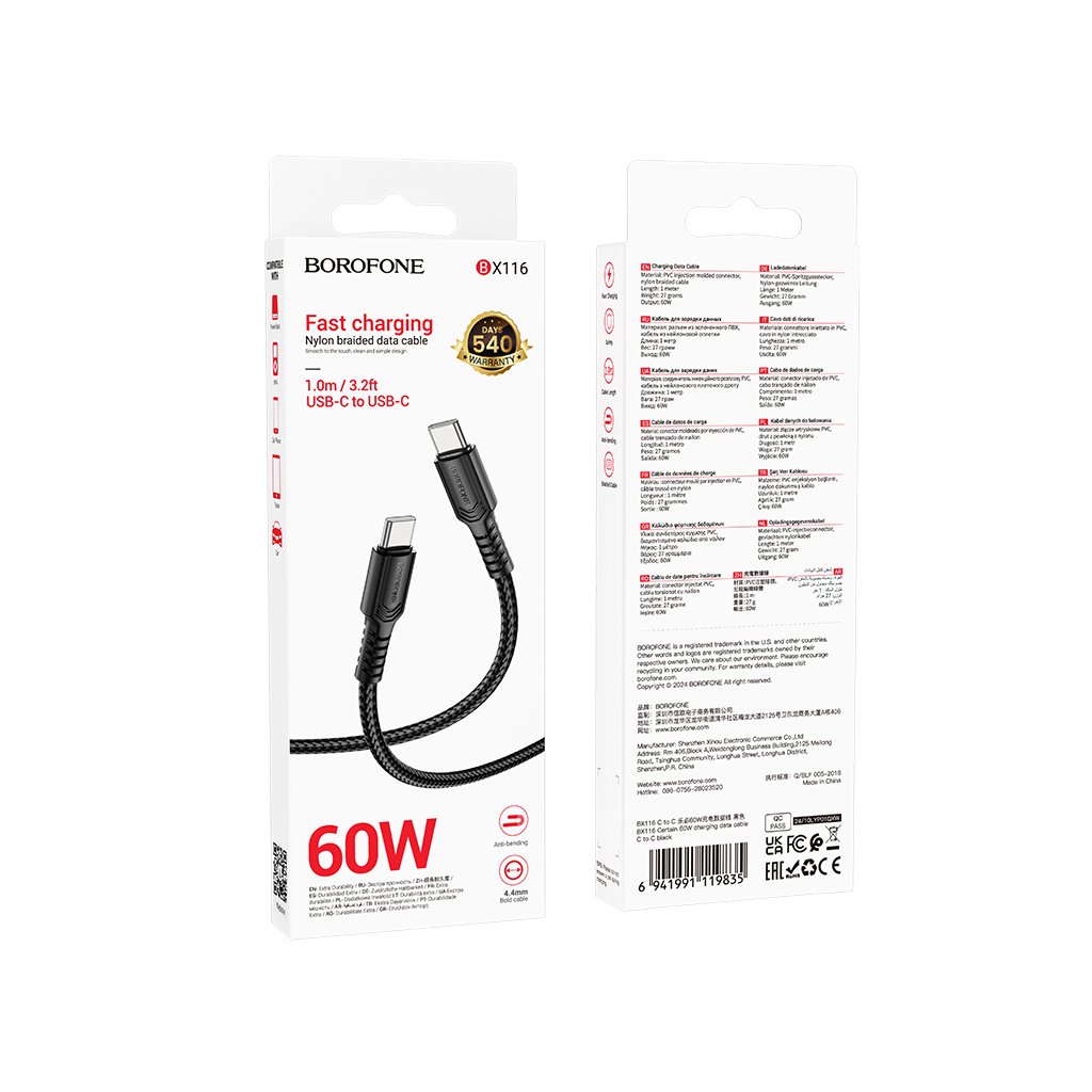 Dátový kábel Borofone BX116 Certain USB-C - USB-C PD 60W 3A 1m čierny