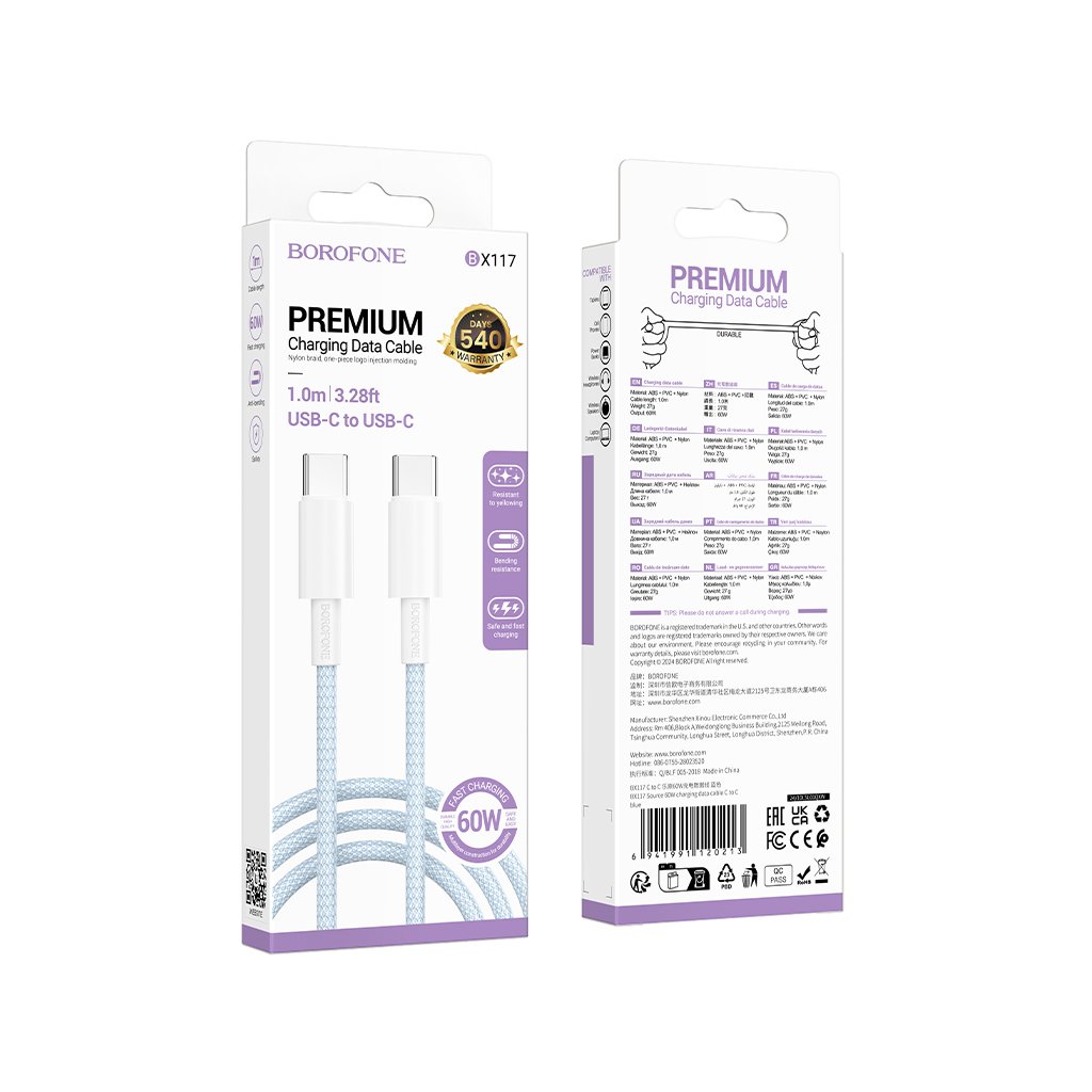 Dátový kábel Borofone BX117 Source USB-C - USB-C PD 60W 3A 1m modrý