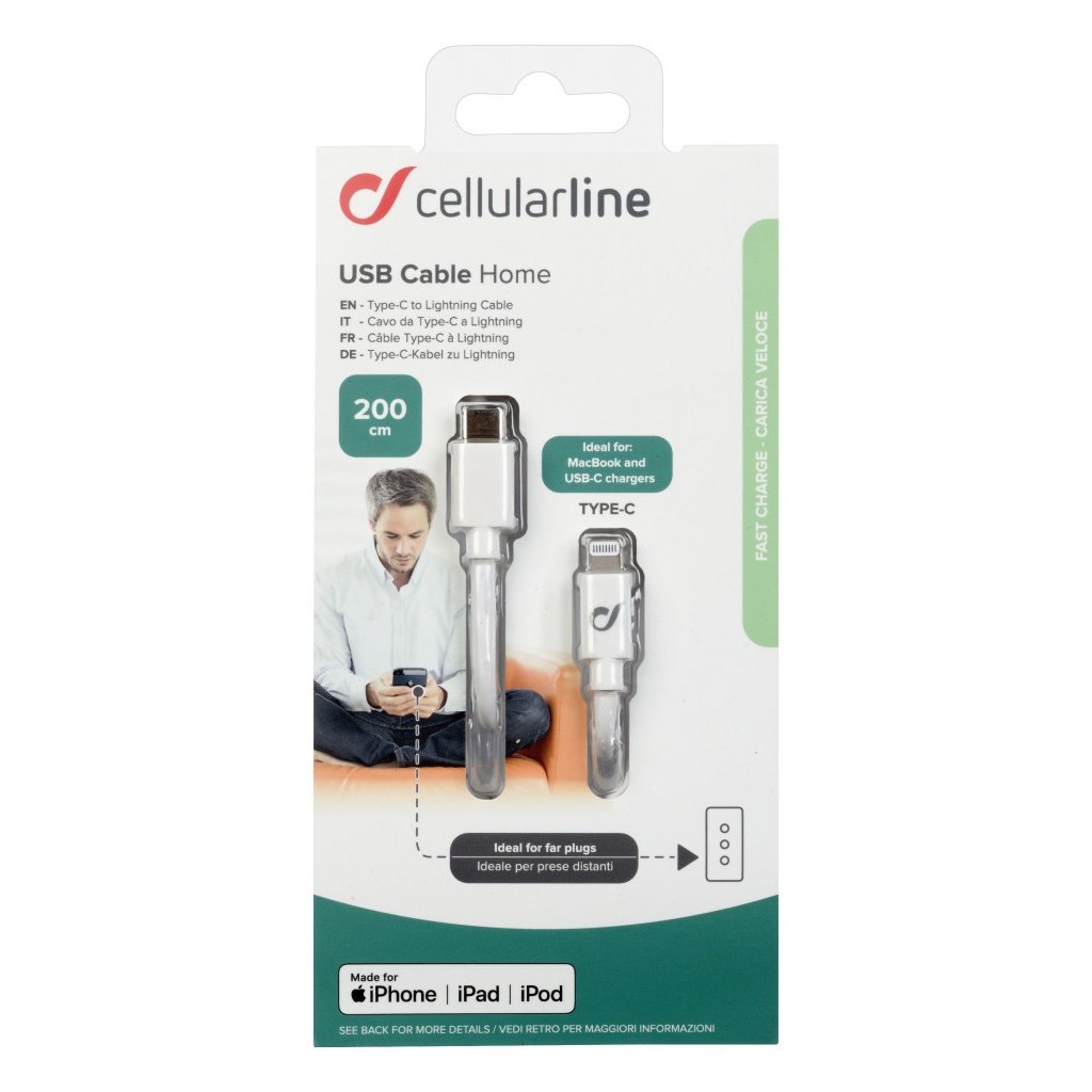 Dátový kábel CellularLine USB-C s konektorom Lightning, 200 cm, biely