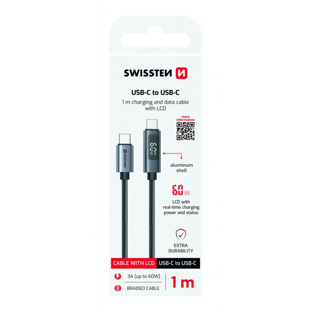 Dátový kábel Swissten LCD USB-C - USB-C 1 m