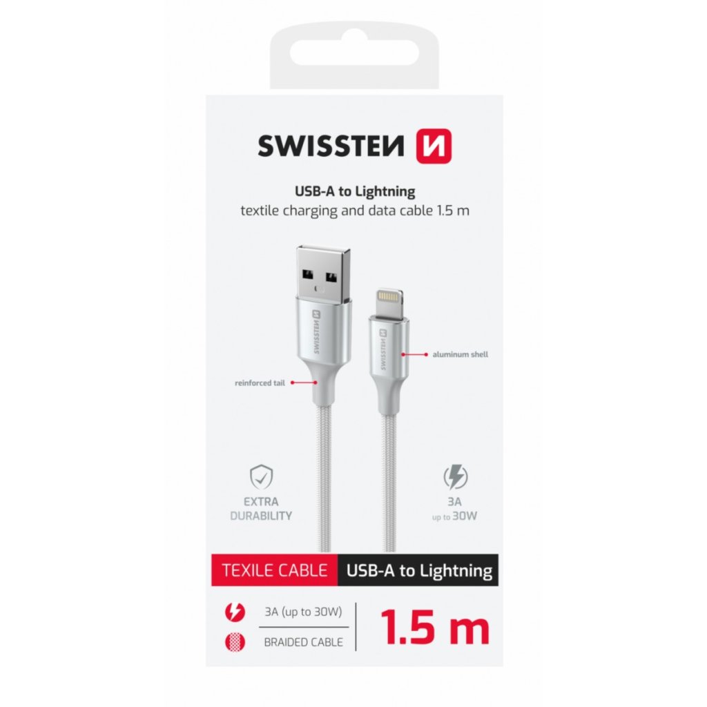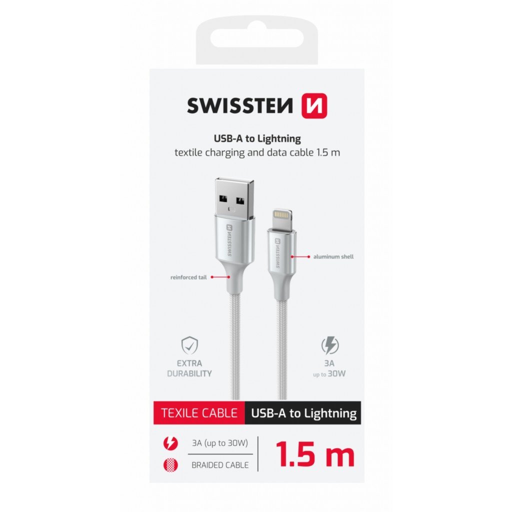 Dátový kábel Swissten Textile II USB-A - Lightning 1,5 m biely
