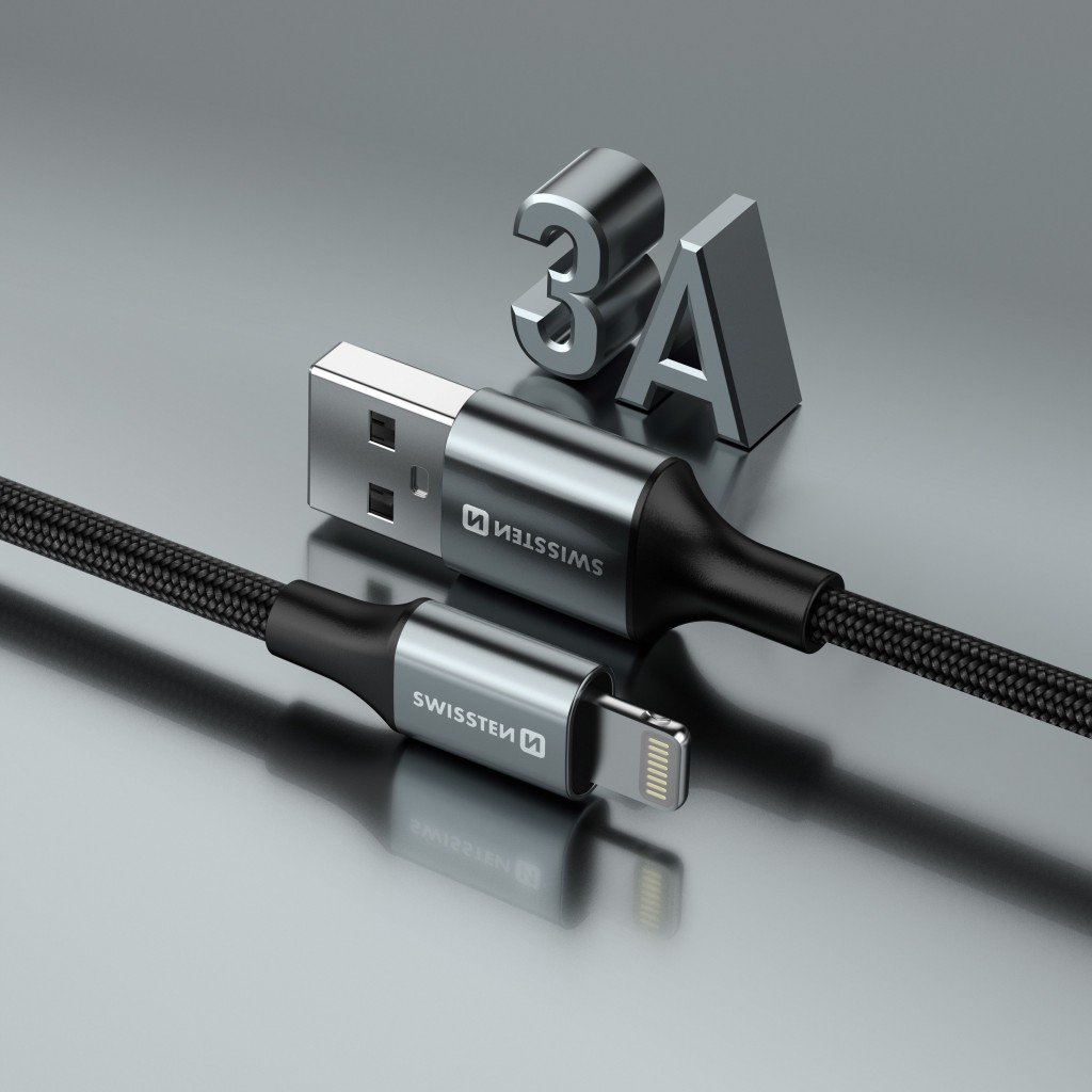 Dátový kábel Swissten Textile II USB-A - Lightning 1,5 m čierny