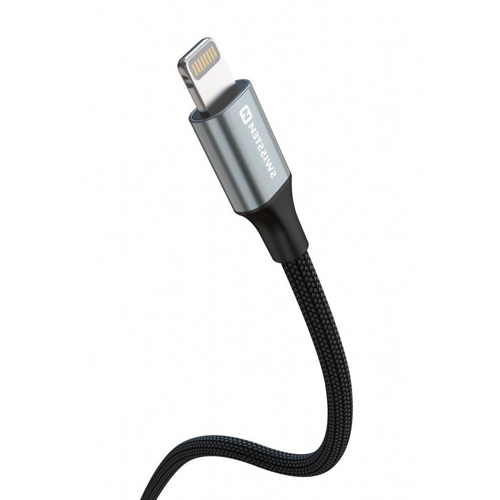 Dátový kábel Swissten Textile II USB-A – Lightning 1,5 m čierny