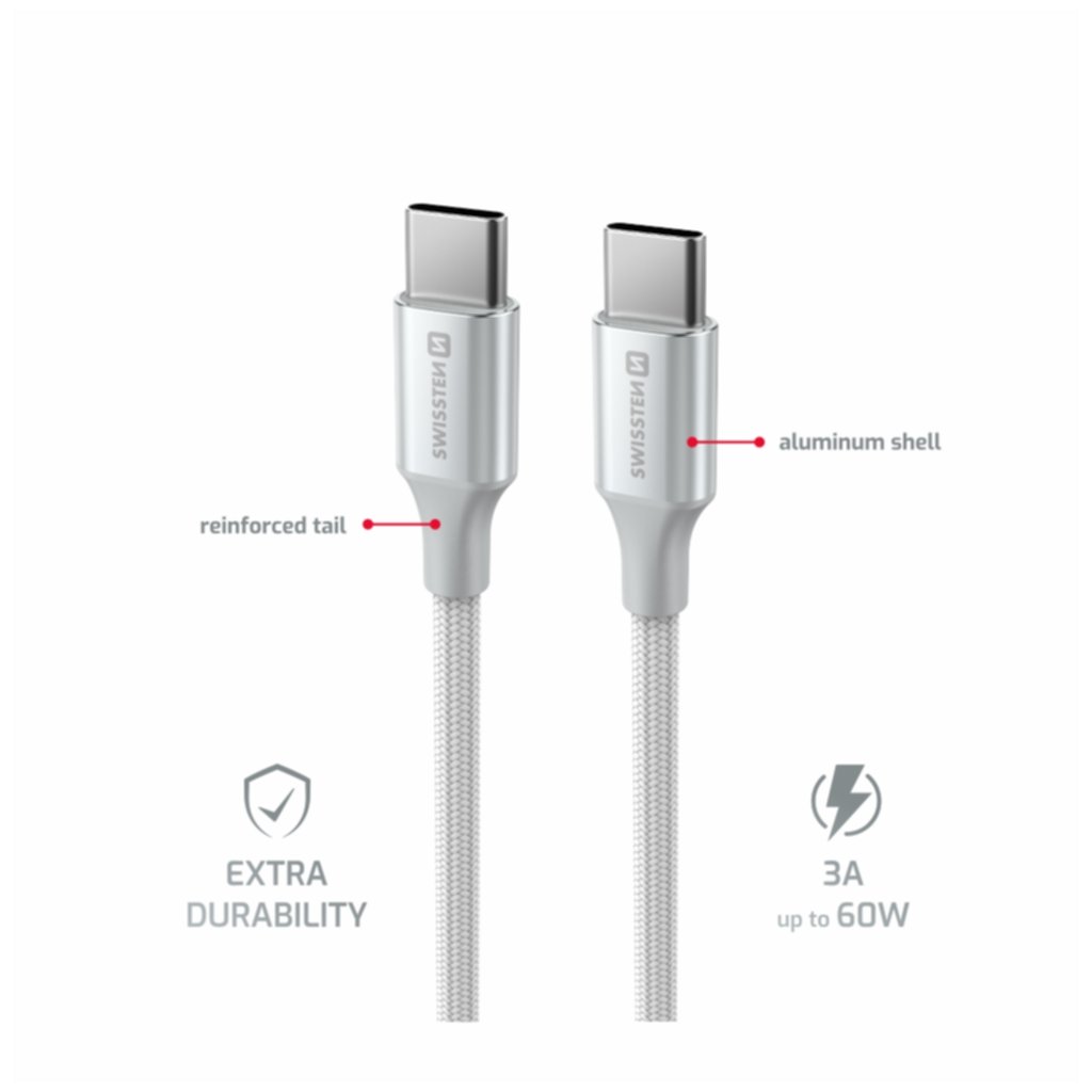 Dátový kábel Swissten Textile II USB-C na USB-C 1,5 m biely