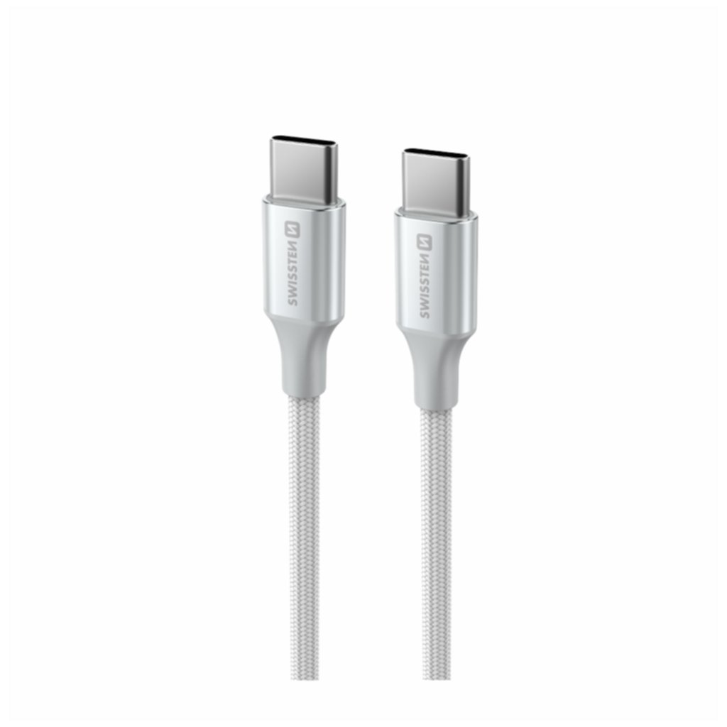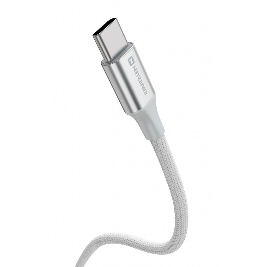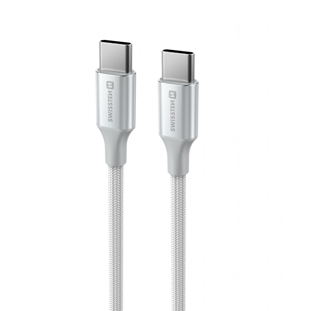 Dátový kábel Swissten Textile II USB-C na USB-C 1,5 m bielyDátový kábel Swissten Textile II USB-C na USB-C 1,5 m biely