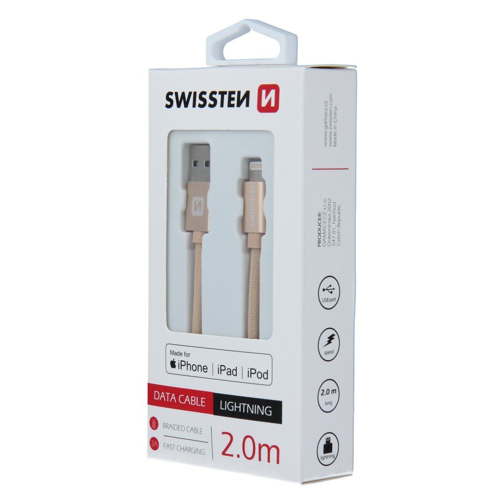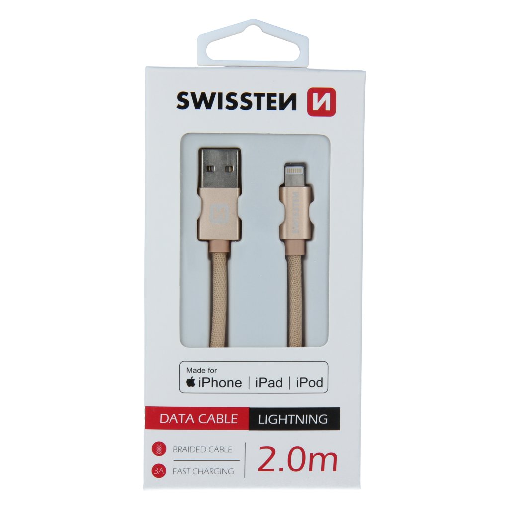 Dátový kábel swissten textilný usb / lightning mfi 2.0 m zlatý